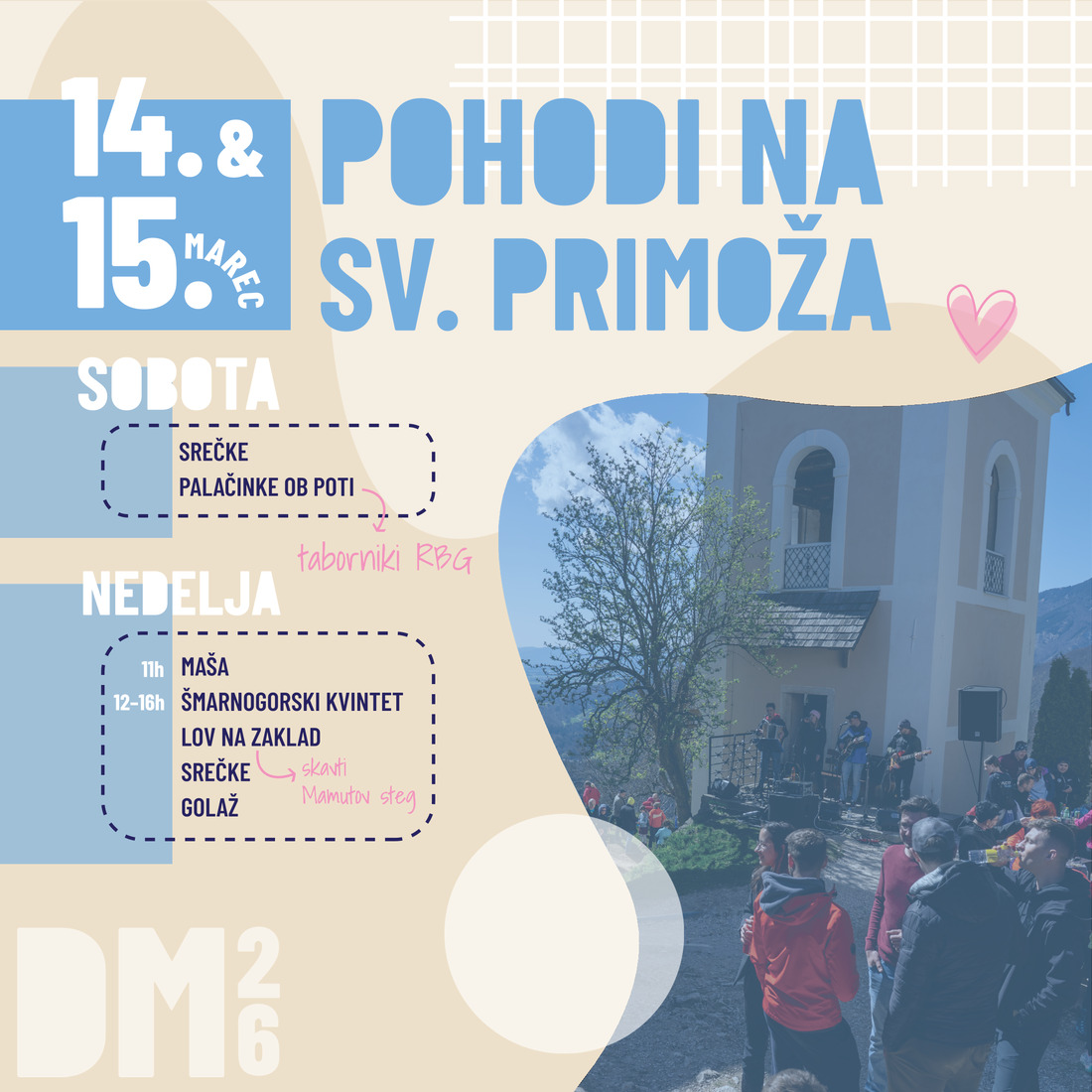V soboto, 14., in v nedeljo, 15. marca, ste vabljeni na Dobrodelni pohod na Svetega Primoža (v primeru slabega vremena bo dogodek prestavljen). 🥾