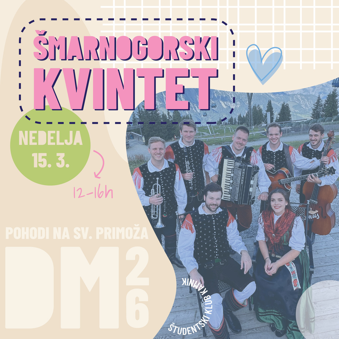 🎶 V nedeljo po sveti maši bo za prijetno vzdušje v narodno-zabavnih ritmih poskrbel ansambel Šmarnogorski kvintet.
