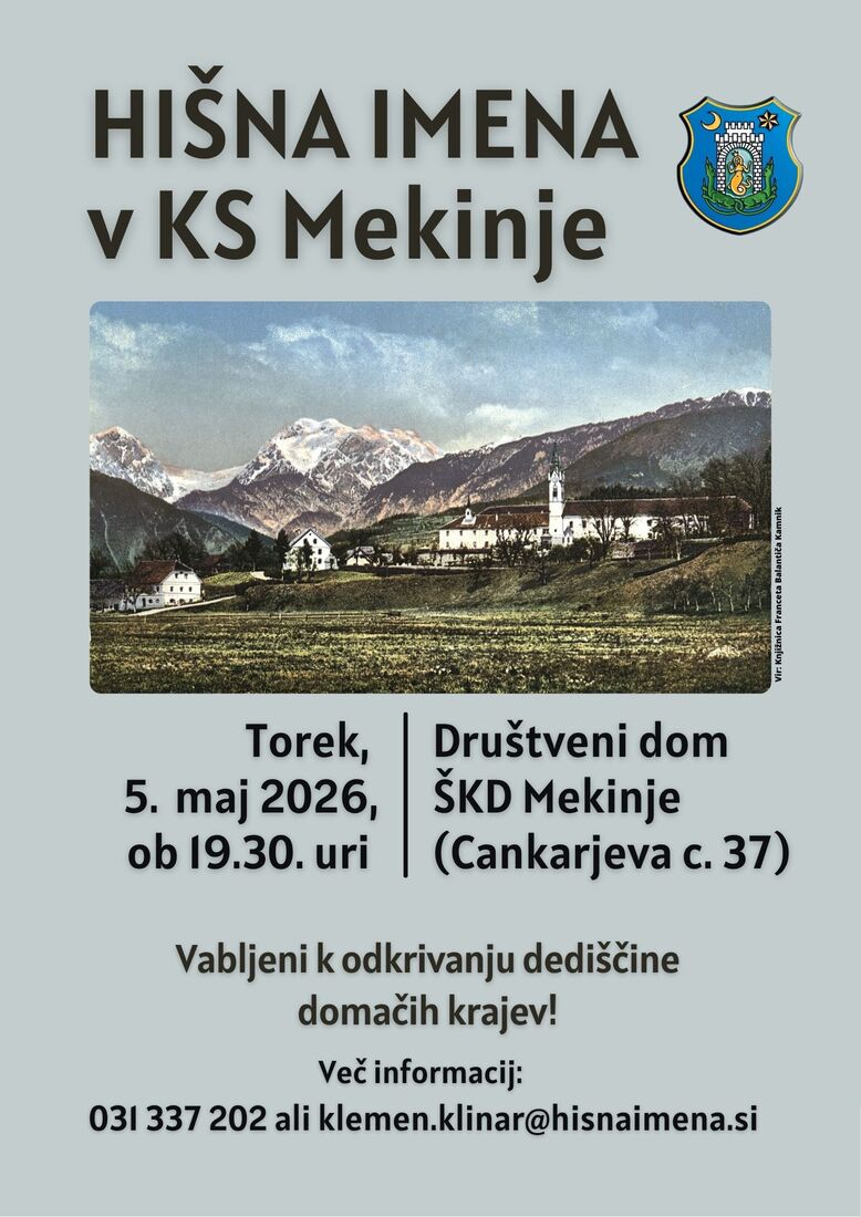 Vabljeni v KS Mekinje, v dvorano ŠKD Mekinje, v torek, 5. maja 2026, ob 19.30.