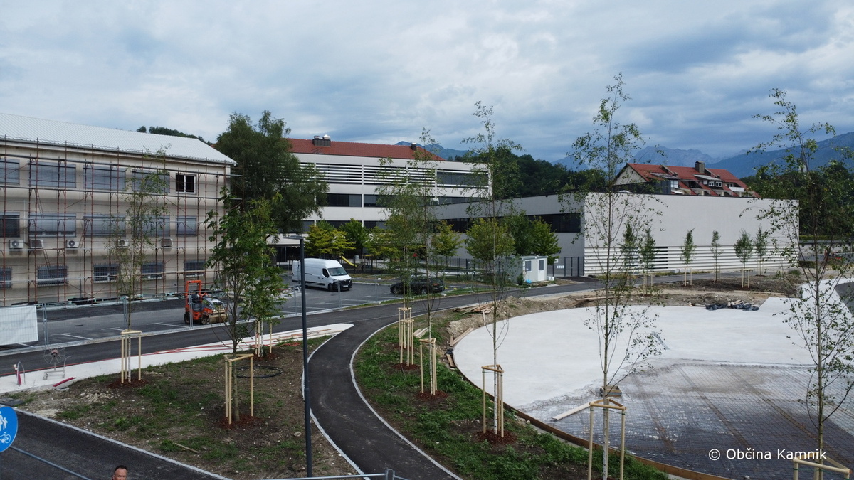 Izvajala so se gradbena dela na območju športnih površin med šolama, in sicer je izvajalec del izvedel meritve položenega asfaltnega sloja kot podlage za kasnejše polaganje sintetične obloge na območju atletske steze, konec tedna je bilo na območju zunanjih površin zasajenih 55 dreves. Na območju dostopne poti do parkirišča ''pod Metalko'' so se izvajala gradbena dela vgrajevanja robnikov in granitnih kock.
