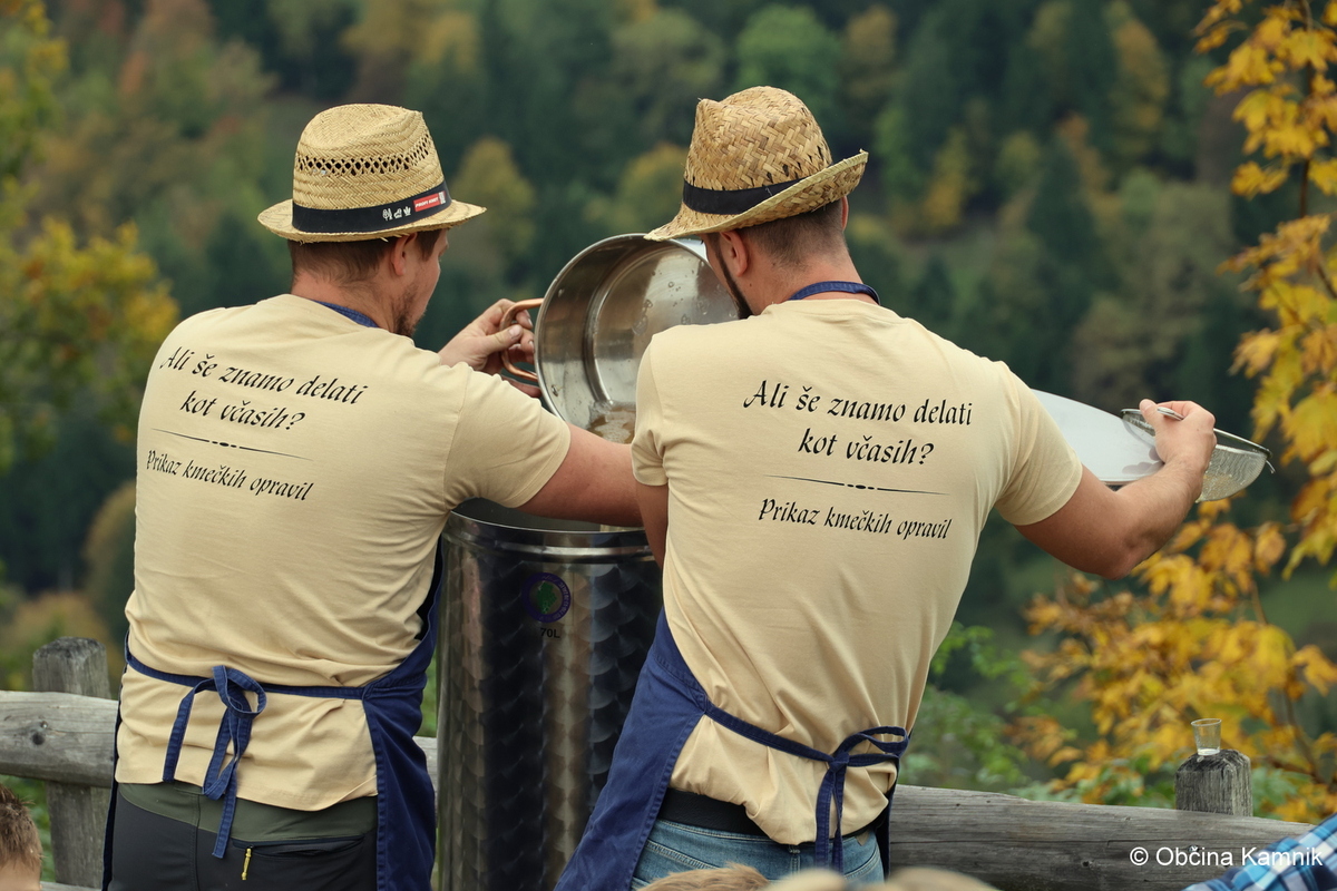 Med prikazi opravil so si obiskovalci lahko ogledali: peko kostanja, pridelavo jabolčnega soka, striženje ovc, ribanje zelja, peko palačink na starem štedilniku, žaganje drv, ter prikaz izdelave volnenih izdelkov. Obenem so bile na voljo tudi stojnice z domačimi dobrotami iz lokalnega okolja: Kmetija pr' Homarju z mlečnimi izdelki, Čebelarstvo Pirš z medom in Kmetija Cvaj z jabolčnim sokom ter kisom.