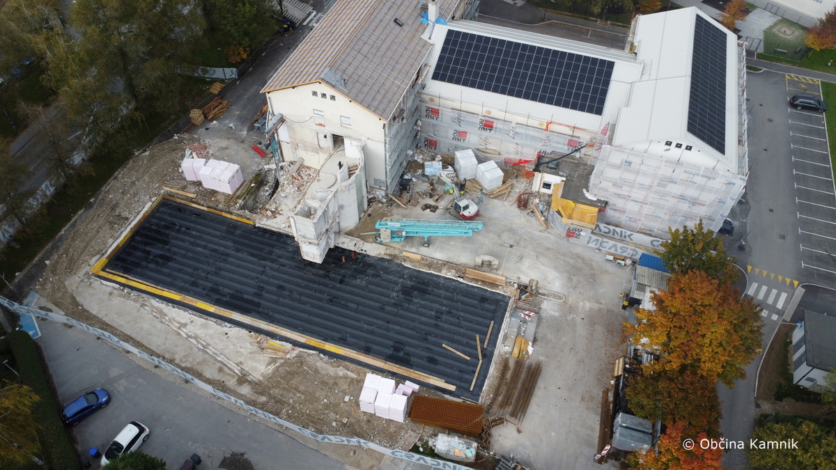 Izvajalec del je v preteklem tednu začel s potrebnimi deli za zamenjavo kritine na delu stavbe št. 1150 v k. o. Kamnik, in sicer na SZ delu objekta, kjer so prostori glasbene šole ter Zavoda za zdravstveno zavarovanje Slovenije.