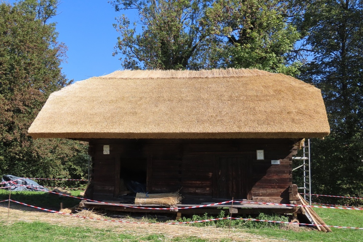 Obnova je potekala z veliko mero spoštovanja do izvirne oblike in tradicionalnih gradbenih tehnik. Posebno pozornost smo namenili ohranjanju avtentičnih materialov, med katerimi izstopa slamnata streha – značilen element slovenske stavbne dediščine. Zaključna faza obnove je tako prinesla tudi novo slamnato kritino, ki je bila izvedena po tradicionalnem postopku in s spretnostjo domačih mojstrov.