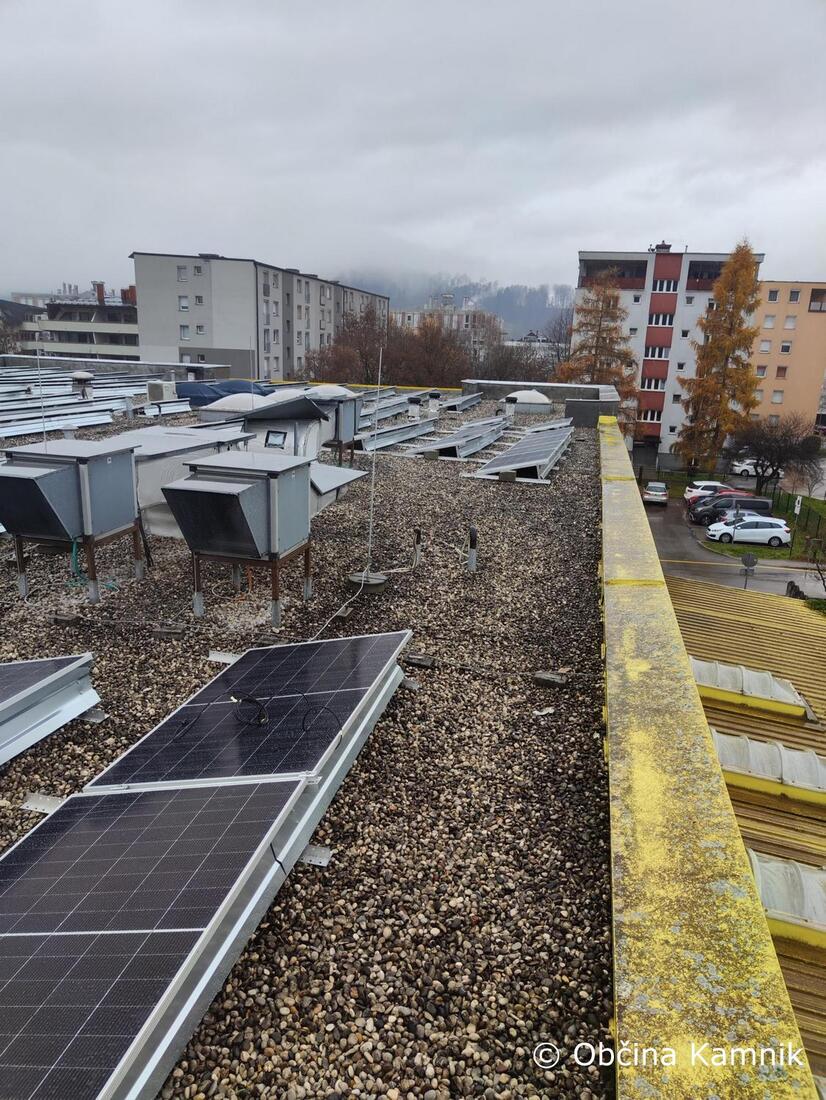 Izvajalec EPEU, obnovljivi viri, d. o. o., ki je bil izbran kot najugodnejši ponudnik na osnovi izvedenega javnega naročila št. JN004343/2025-SL1/01 z dne 6. junij 2025, je izvedel montažo opreme na strehi.