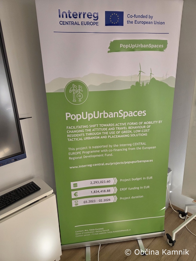 Občina Kamnik, vodilna partnerica projekta PopUpUrbanSpaces - Lažji prehod k aktivnim oblikam mobilnosti s spreminjanjem odnosa in potovalnega vedenja prebivalcev z uporabo rešitev zelenega taktičnega urbanizma in ustvarjanjem prostora, vstopa v zadnje trimesečje projekta, v kateri bo na podlagi strokovnih izhodišč taktičnega urbanizma in z izkušnjami, pridobljenimi ob izvajanju pilotnih aktivnosti na izbrani lokaciji pred Kavarno Veronika promovirala projektne rezultate, pripravila akcijski načrt za nadaljnje ukrepe taktičnega urbanizma v Kamniku ter na zaključni konferenci projekta, ki bo 21. januarja 2026 v Kamniku, s partnerji sklenila večletno uspešno sodelovanje.