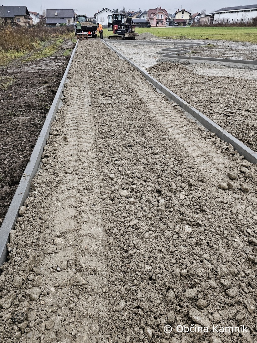 Nadaljevala se je vgradnja predfabriciranih robnikov ter urejanje okolice gradbišča. Izvedlo se je nasutje grobe kamnite grede ter izdelava tamponske podlage v več plasteh, ki bo služila kot osnova za kasnejšo vgradnjo betonskih elementov in finalne podlage.