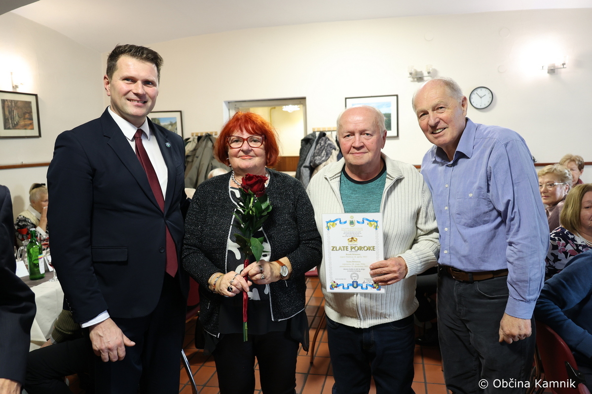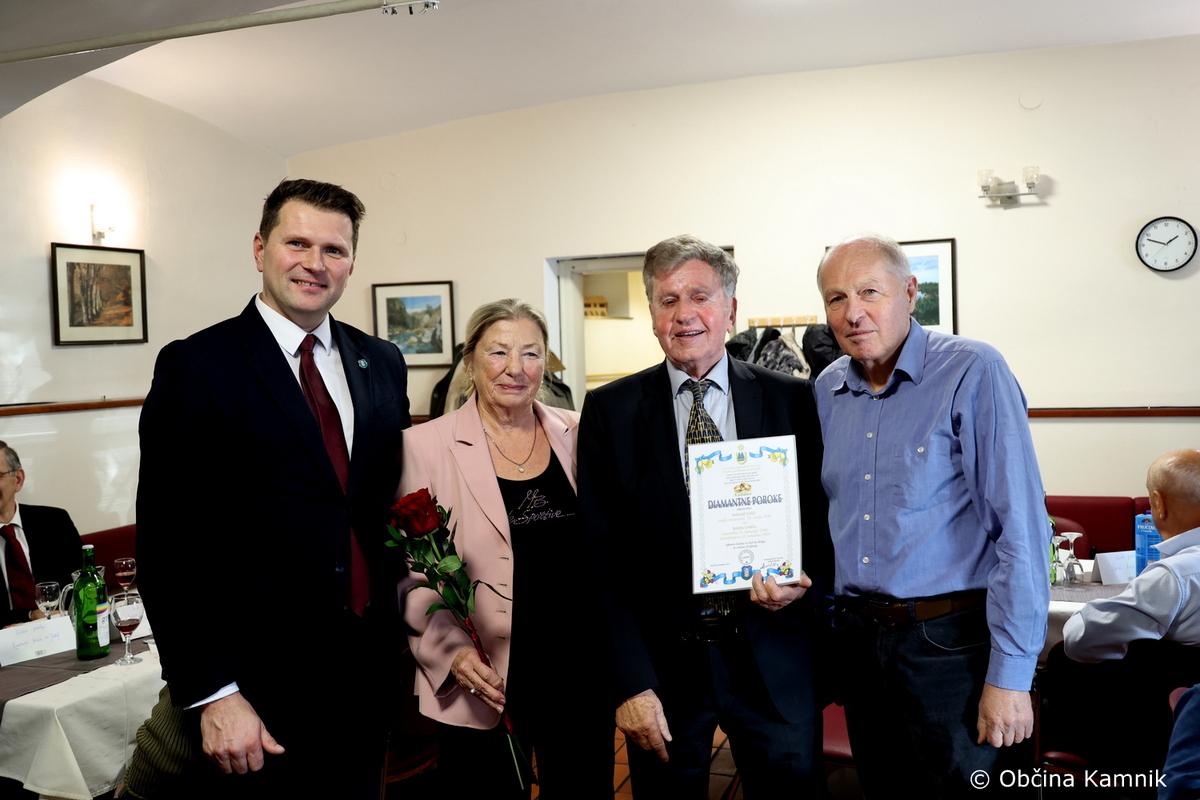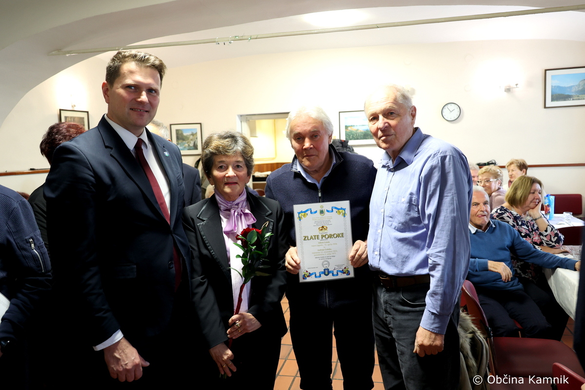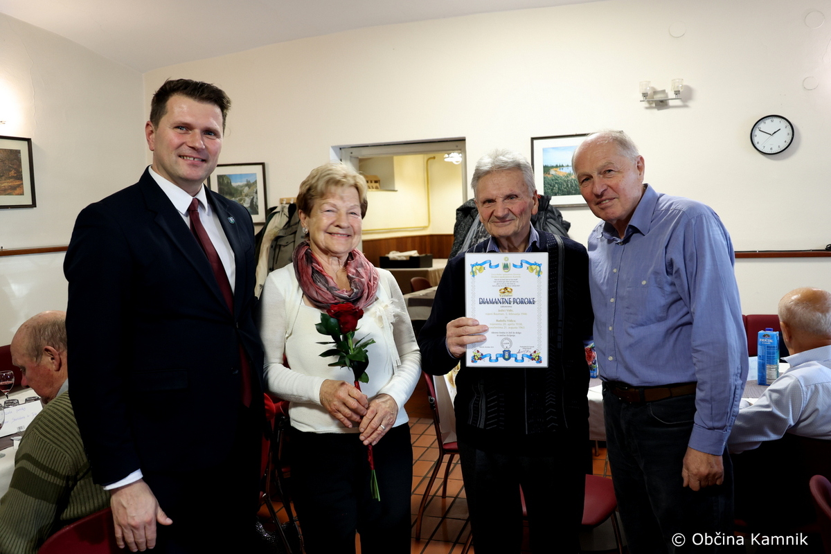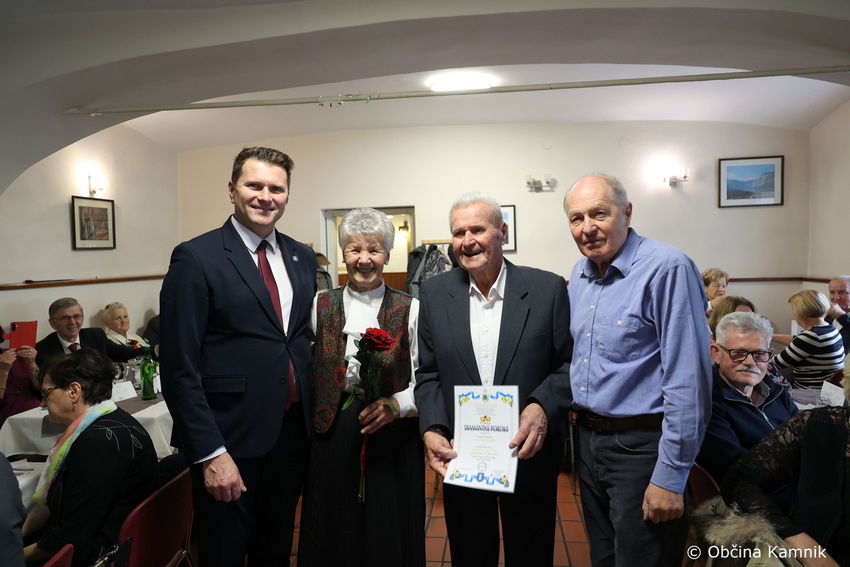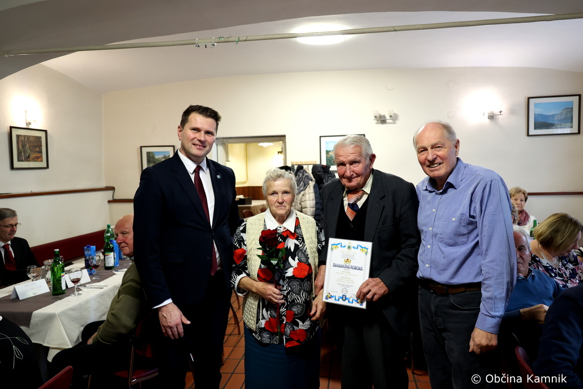 Župan Matej Slapar se je danes, 2. decembra 2025, udeležil slavnostne podelitve priznanj železnim, diamantnim in zlatim parom Društva upokojencev Kamnik. Skupaj s predsednikom Društva upokojencev Kamnik Mihom Resnikom sta v gostišču Marjanca podelila priznanja in cvetje jubilantom. V zraku je bila ljubezen oziroma kot pravi ljudska pesem: »Ko srci združeni sta v eno ...«
