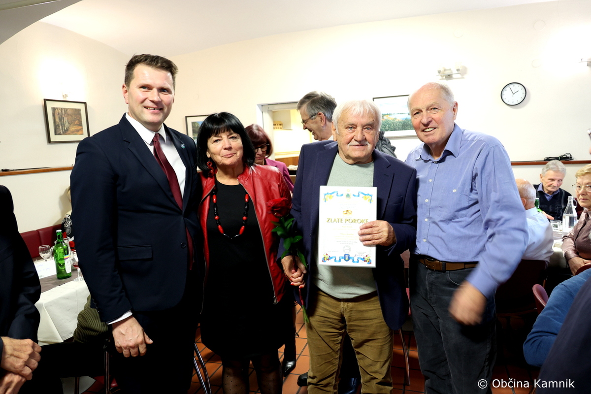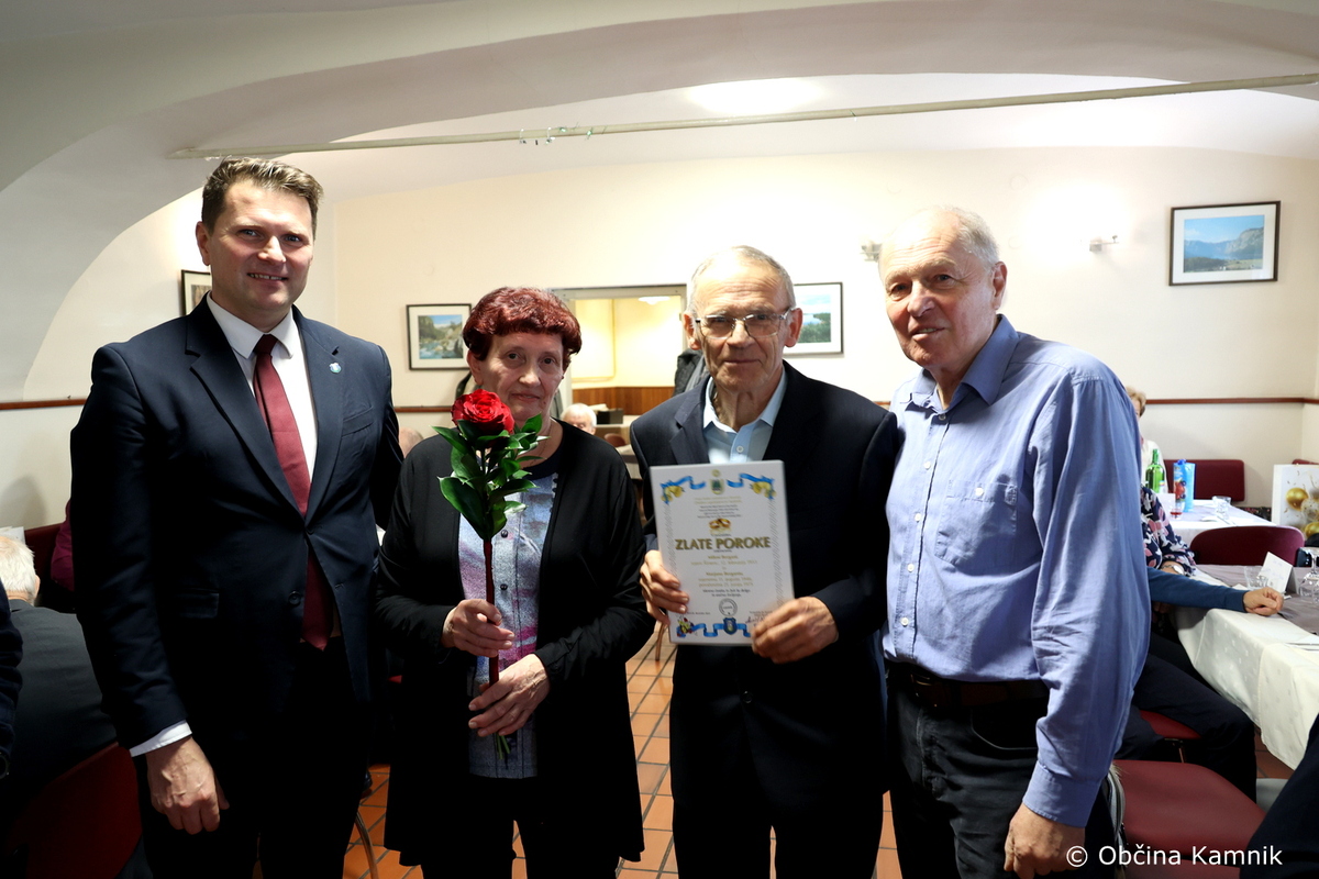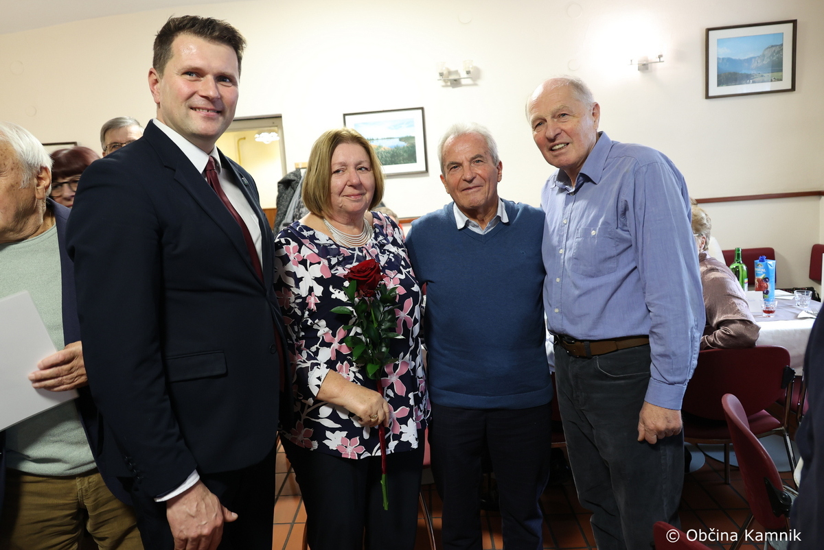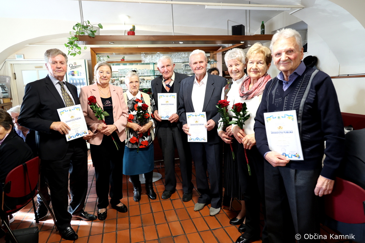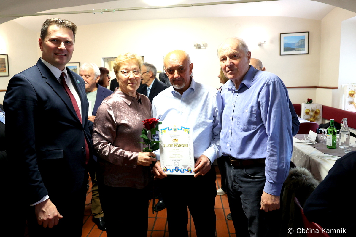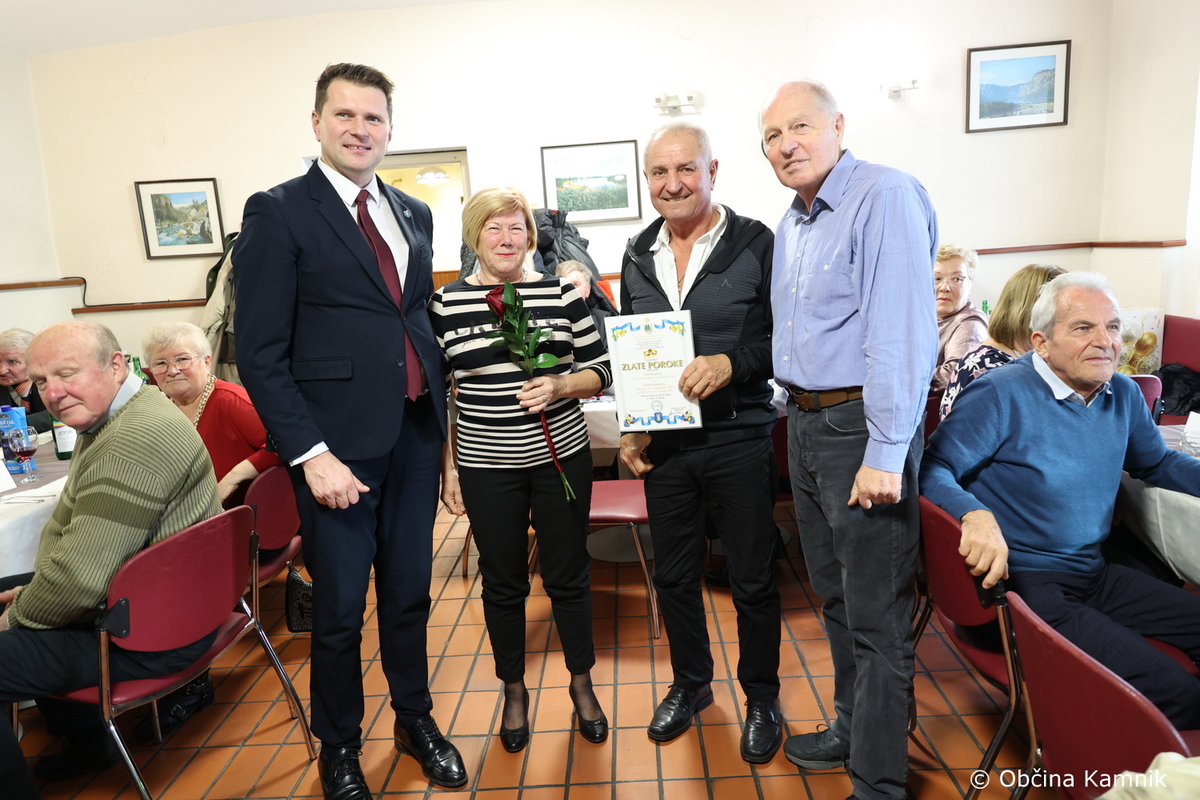 Župan Matej Slapar se je danes, 2. decembra 2025, udeležil slavnostne podelitve priznanj železnim, diamantnim in zlatim parom Društva upokojencev Kamnik. Skupaj s predsednikom Društva upokojencev Kamnik Mihom Resnikom sta v gostišču Marjanca podelila priznanja in cvetje jubilantom. V zraku je bila ljubezen oziroma kot pravi ljudska pesem: »Ko srci združeni sta v eno ...«