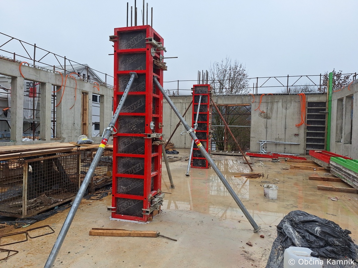 V preteklem tednu je izvajalec del, družba Gradnik, d. o. o., nadaljeval s pogodbenimi deli v okviru energetske sanacije javnih objektov Glasbene šole Kamnik in Knjižnice Franceta Balantiča Kamnik. Izvajala so se montažna in slikopleskarska dela na delu stavbe št. 1150 v k. o. Kamnik. Na objektu osrednje kamniške knjižnice se je nadaljevalo izvajanje gradbenih del, in sicer opaženje nosilnih stebrov, vezanje in vgrajevanje armature nosilnih sten prvega nadstropja južnega trakta objekta.