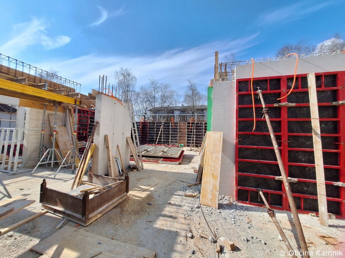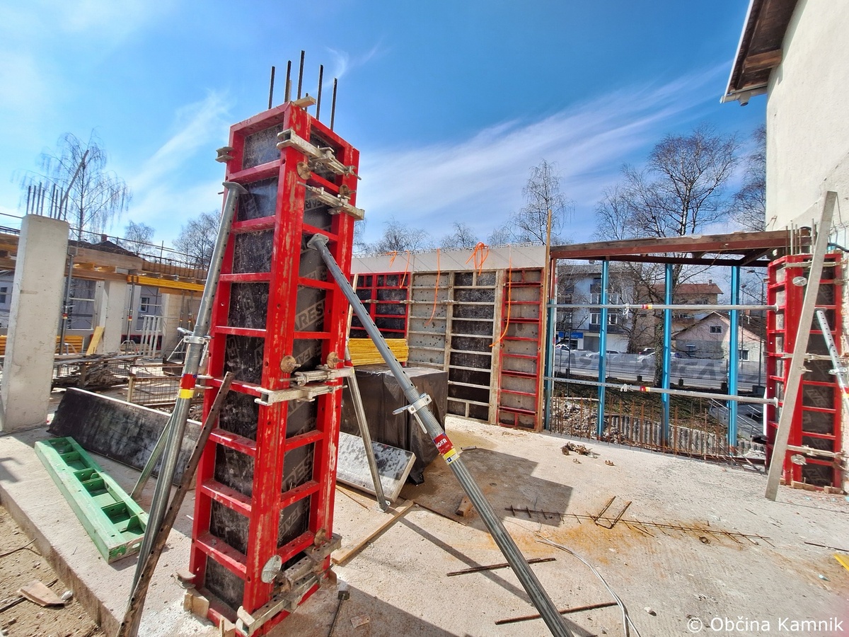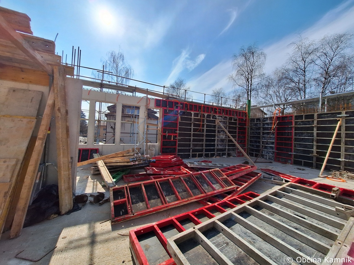 Na objektu osrednje kamniške knjižnice se je nadaljevalo izvajanje gradbenih del, in sicer opaženje podpornega stebra, vgrajevanje armature in betona v vzhodni del armirano betonske plošče nad prvim nadstropjem. Na zahodni strani južnega trakta se je izvajalo vezanje in vgrajevanje armature nosilnih sten prvega nadstropja, vgrajevanje zaščitnih cevi za namen elektro instalacij ter montaža opaža notranjega dela sten.