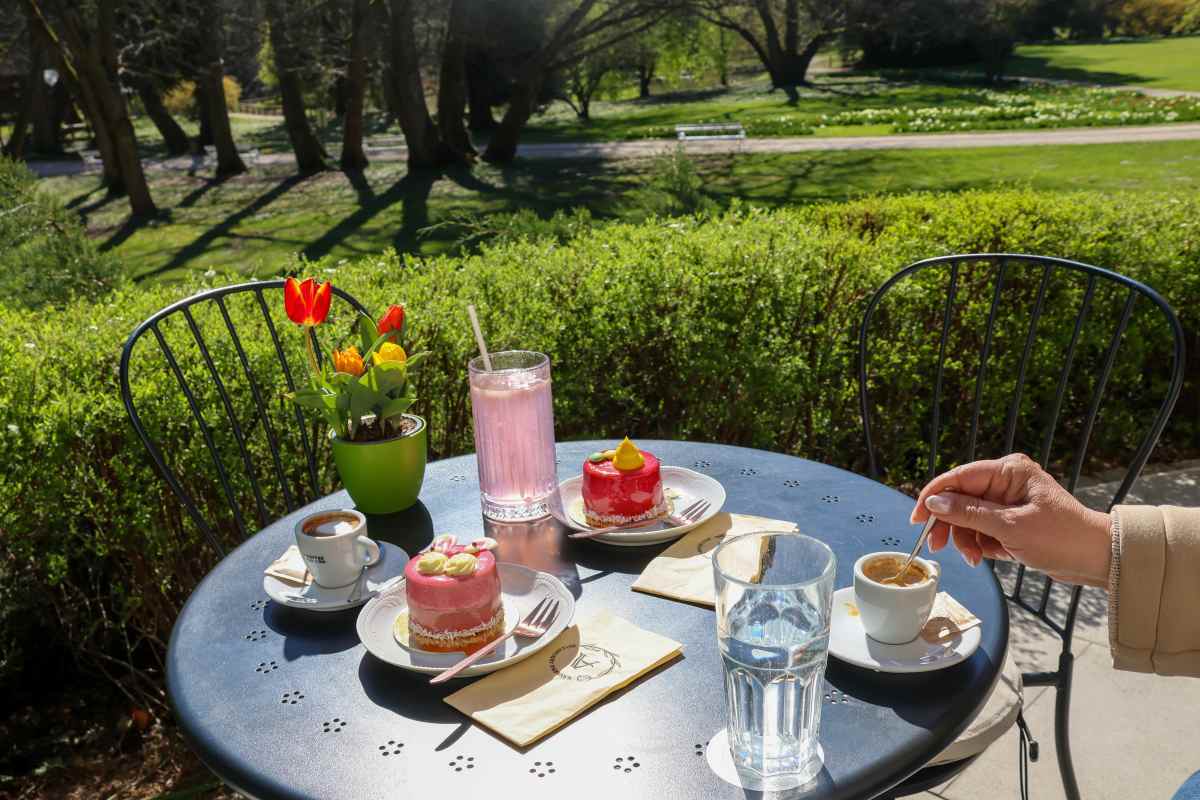 Za prijeten postanek med sprehodom poskrbi tudi gostinska ponudba v parku. Obiskovalcem je na voljo Kavarna Arboretum, kjer lahko izbirajo med toplimi in hladnimi napitki, prigrizki, sladicami, sladkimi in slanimi pitami, pico ter drugimi dobrotami, pripravljenimi v sodelovanju z lokalnimi ponudniki. Poleg tega so na voljo še tri sezonske gostinske točke (letni vrt pri Boljkovi galeriji, točka pri otroškem igrišču in nova lokacija pri pristavi), ki so odprte ob vikendih in praznikih, med Spomladansko razstavo pa od 24. aprila do 3. maja vsak dan. Po 20. aprilu bodo za lačne obiskovalce dodatno poskrbeli tudi gostinci pri pristavi s svojo kulinarično ponudbo.