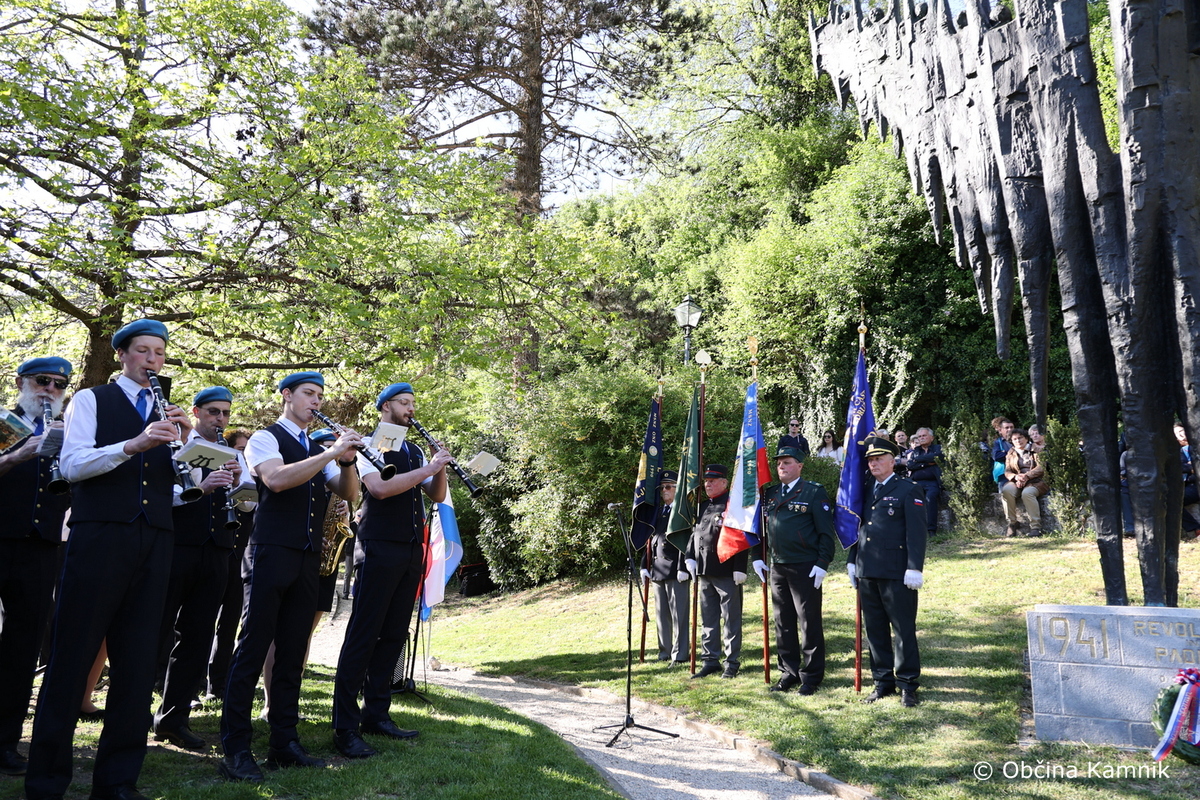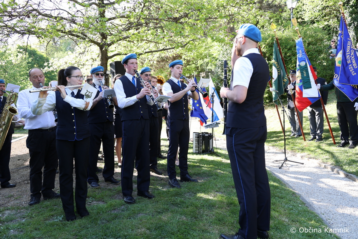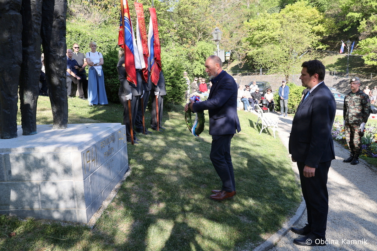 V petek, 24. aprila 2026, je v Parku Evropa potekala slovesnost ob državnem prazniku dneva upora proti okupatorju, s katero smo obeležili 85. obletnico ustanovitve Osvobodilne fronte. Poleg župana Mateja Slaparja so se dogodka udeležili občinske svetnice in svetniki, predstavniki veteranskih in domoljubnih organizacij Občine Kamnik skupaj z zastavonošami. Slavnostni govornik je bil Igor Kanižar, predsednik Pokrajinskega sveta ZZB NOB Osrednje Slovenije. Župan in slavnostni govornik sta ob tej priložnosti k spomeniku položila venec.