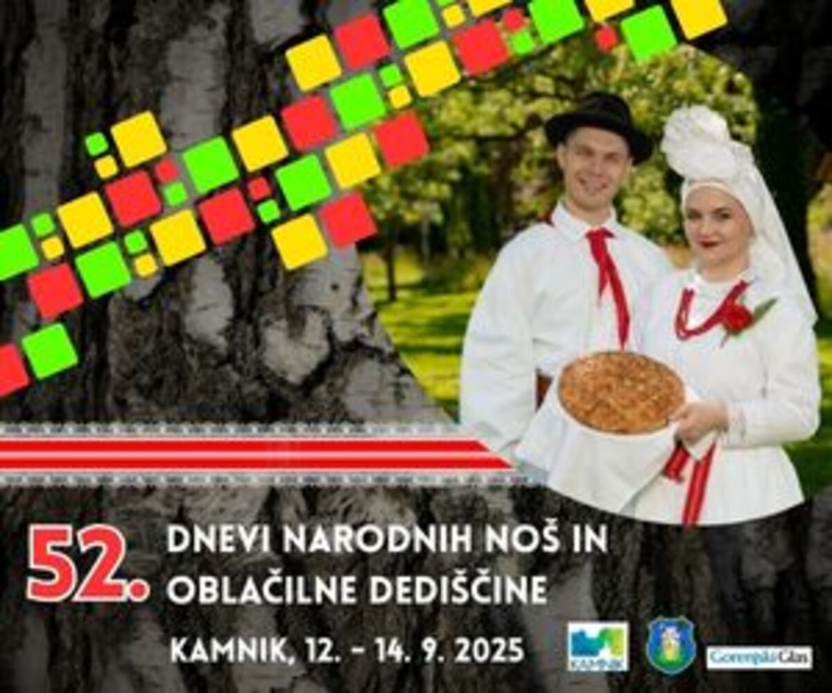 Kamnik bo tudi letos zažarel v barvah, ritmih in melodijah slovenske kulturne dediščine. Med 12. in 14. septembrom 2025 bomo gostili že 52. Dneve narodnih noš in oblačilne dediščine, največji etnološki festival v Sloveniji, ki vsako leto privabi več 10.000 obiskovalcev ter udeležence iz Slovenije in tujine.