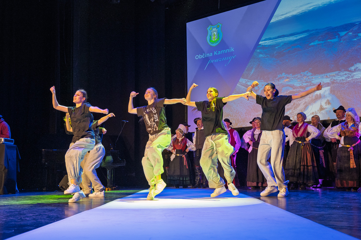 Nocojšnji večer je nadgradila plesna točka, ki je združila na prvi pogled različne svetove – tradicijo in sodobnost, ustaljene navade in svobodo izraza. Folklorna skupina Kamnik in Plesni klub Šinšin sta sprejela izziv, da raziščeta, kako lahko različni pristopi, generacije in izrazi v sodelovanju ustvarijo nekaj novega, bogatega in navdihujočega.