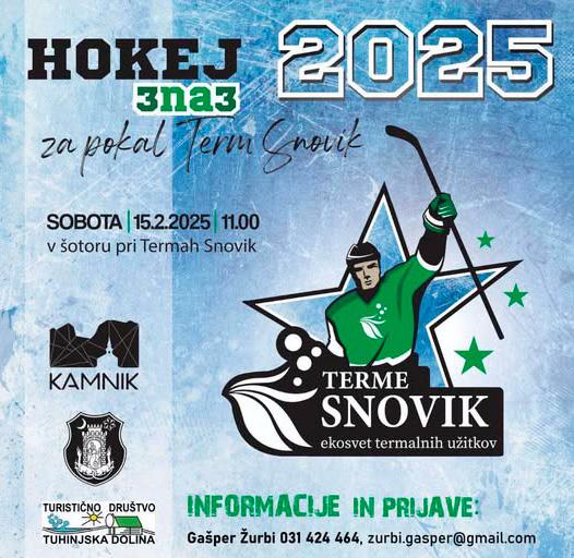 V soboto, 15. februarja 2025, nas na drsališču pri Termah Snovik čaka poslastica za občudovalce hitrih športov, slovenski hokejski turnir za pokal Snovika 2025. Začetek tekmovanj bo ob 11.30, ves dan pa se bodo vrstile bitke 3 na 3.
