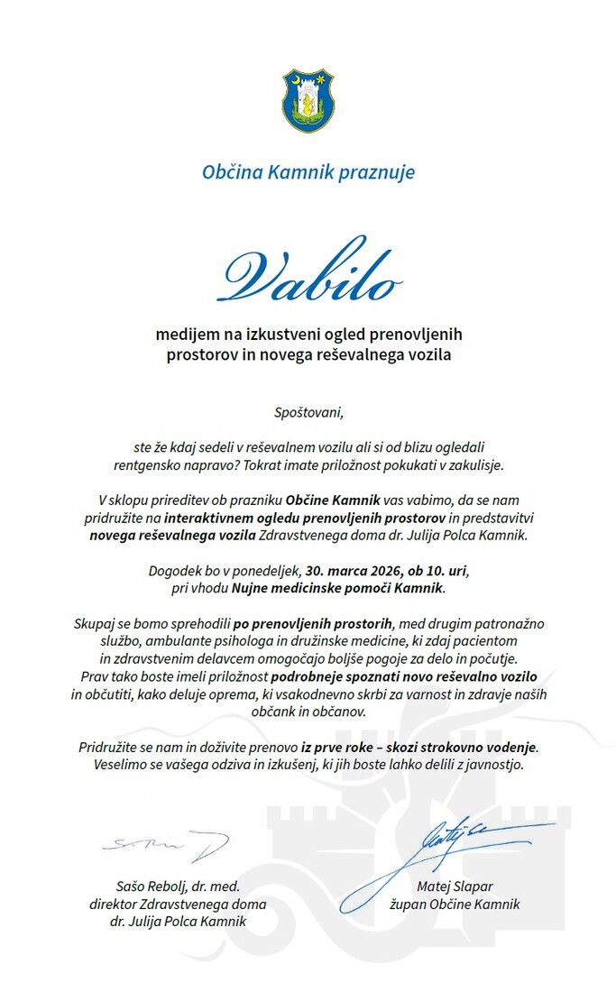 ODPRTJE NOVIH PROSTOROV ZDRAVSTVENEGA DOMA DR. JULIJA POLCA KAMNIK