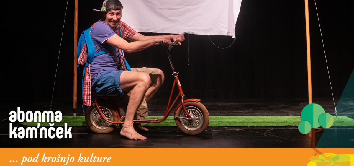 Predstava je narejena po znani glasbeni pravljici Janeza Bitenca. Tinko je poseben fant, ki si zjutraj obleče samo eno hlačnico in en rokav, eno nogavičko in en čevelj. Umije si samo zgornjo polovičko zob, popije samo pol kozarca mleka in pride samo do pol poti do dedka in babice. Ker vidi polovico sveta takega kot je zares, polovico pa takega, kakršnega si ga želi, ga okolica gleda postrani. Predstava praznuje prijateljstvo domišljije brez meja in resničnega sveta s takšnimi in drugačnimi pravili. Premiero predstave je bila leta 2009 je od takrat doživela že več kot 400 ponovitev po celotni Sloveniji. V predstavi igra dramski igralec JERNEJ ČAMPELJ, ki spretno preigrava vloge Tinka, mame in mucke. Prepletanje igranega, petega in lutkovnega, skozi vedno sveže improvizirane delčke predstave, vedno znova zaživi kot nekaj novega. Interaktivna predstava, v kateri uživajo tako najmlajši (3+) kot malce starejši (99 +).
