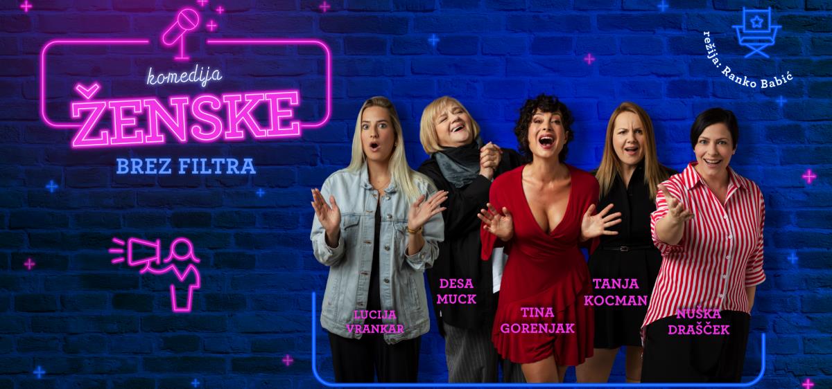 Ženske brez filtra je komedija, kjer 5 žensk brez zadržkov govori o temah, ki so marsikomu blizu, a se jih redko kdo upa naglas izreči. Z iskrenostjo in humorjem obravnavajo različne faze življenja: odnose z moškimi, staranje, starševstvo, spolnost in iskanje lastnih strasti.