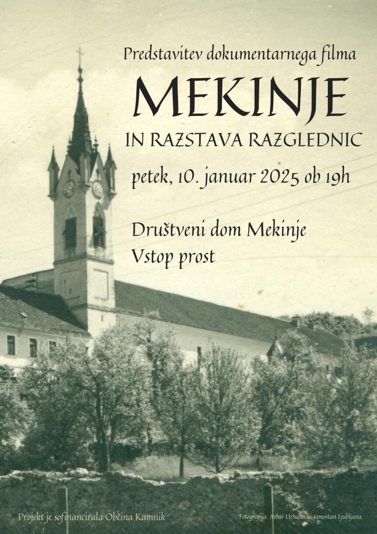 Vabimo vas na predstavitev dokumentarnega filma MEKINJE in razstavo razglednic, oboje si bo mogoče ogledati v petek, 10. 1. 2025, ob 19.00, v Društvenem domu Mekinje.