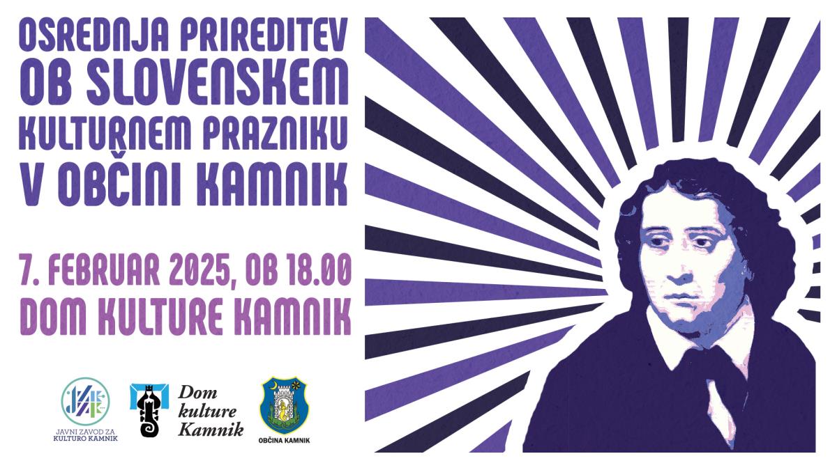 Občina Kamnik in Javni zavod za kulturo Kamnik v petek, 7. februarja 2024, ob 18. uri v dvorani Doma kulture Kamnik pripravljata osrednjo prireditev ob slovenskem kulturnem prazniku, dnevu Franceta Prešerna. Slavnostni govornik bo Anton Tone Smolnikar, daljni sorodnik dr. Franceta Prešerna in častni občan Občine Kamnik.