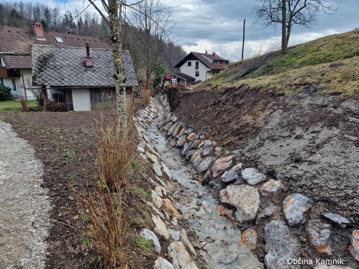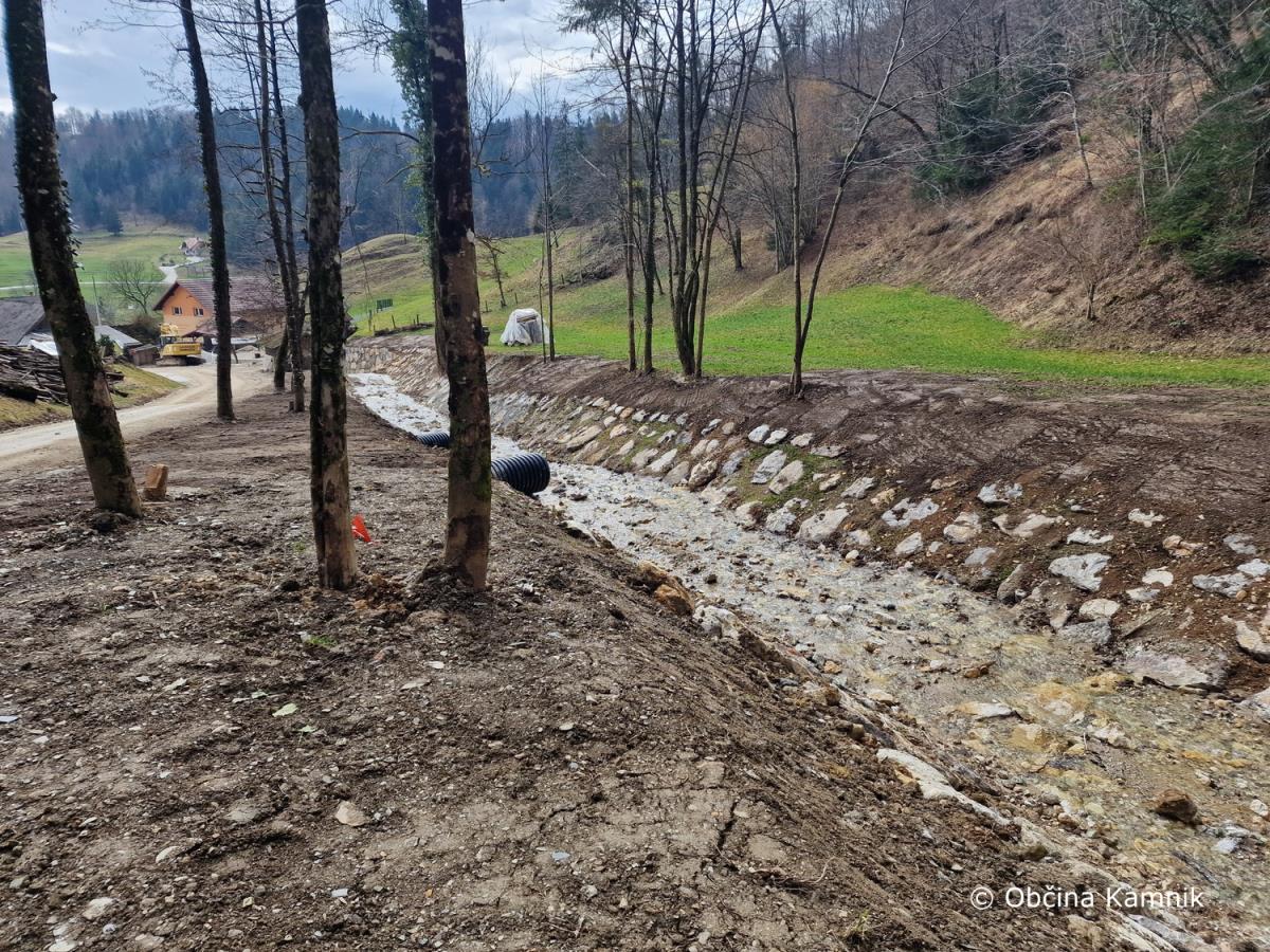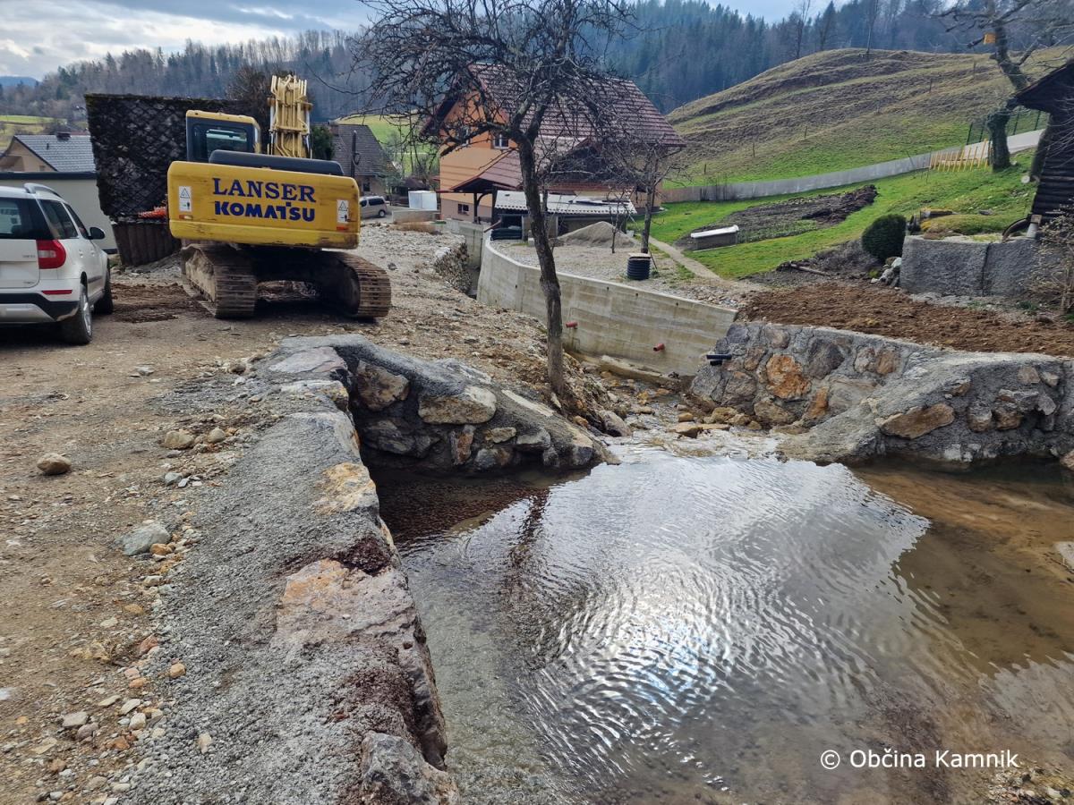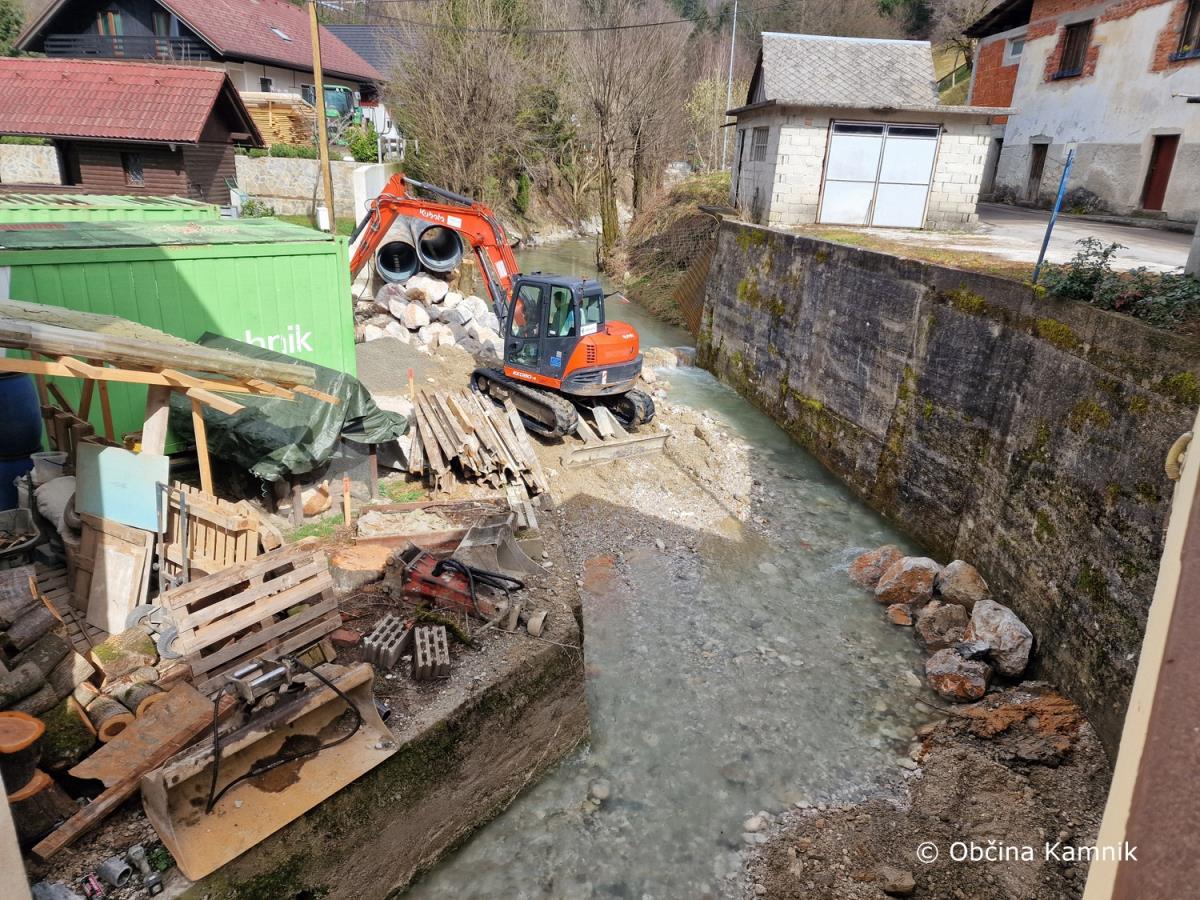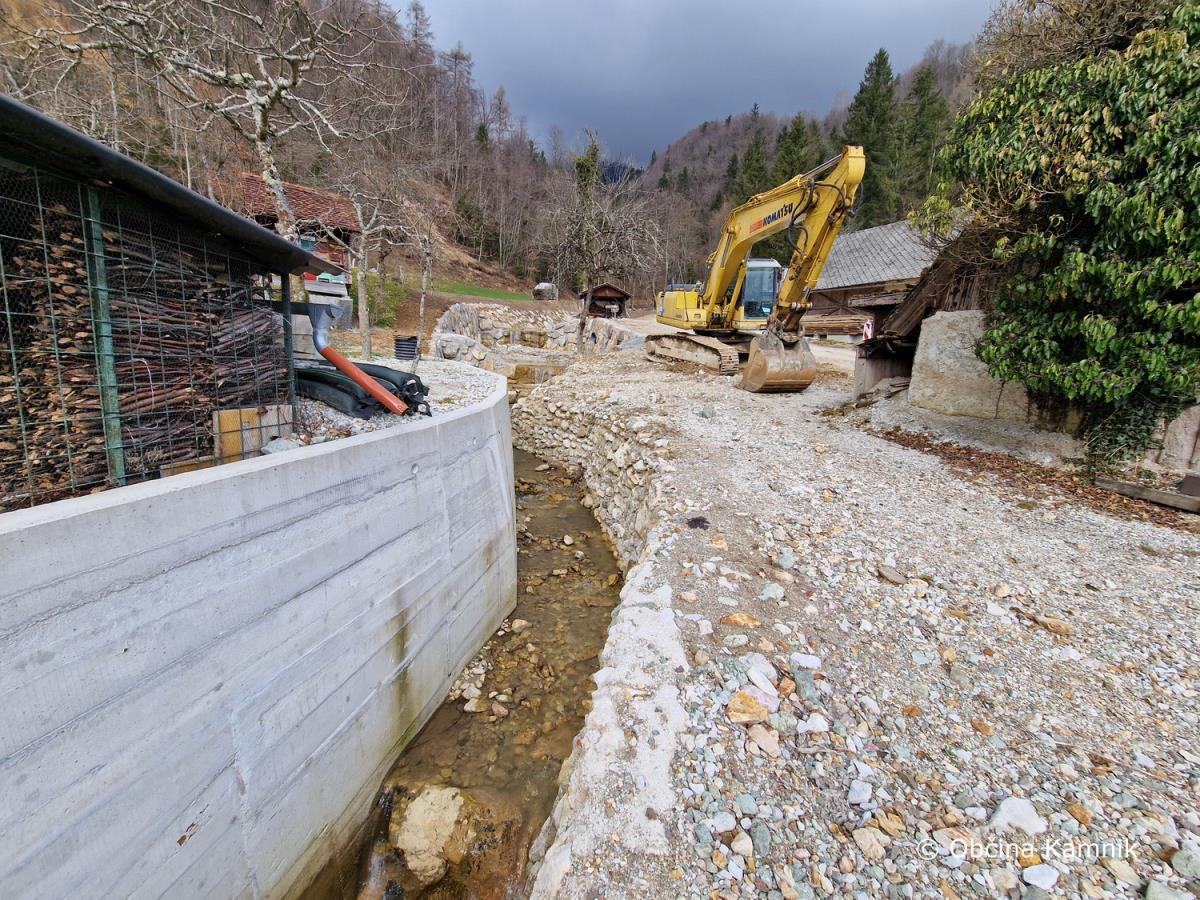 Na območju Občine Kamnik poteka več delovišč sanacijskih obnov vodotokov in hudournikov. Direkcija RS za vode je na podlagi izdelanega programa sanacije za izvedbo ureditev vodotokov po poplavah, skupaj s podjetjem Hidrotehnik d. o. o. in Nivo Eko d.o.o., ter podizvajalci izvaja sanacijo po poplavah. Z urejanje in sanacijami vodotokov po poplavah se v prvi vrsti zagotavlja večja pretočnost, čiščenje naplavin in plavja ter zavarovanja poškodovanih brežin vodotokov. Direkcija Republike Slovenije za vode je pripravila