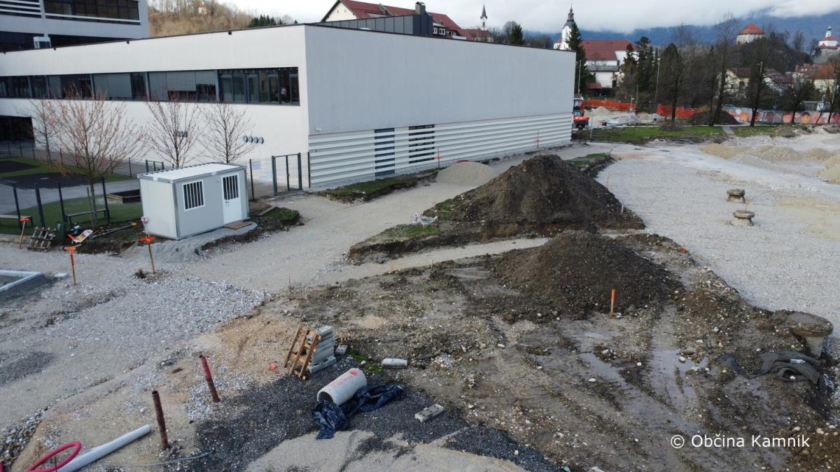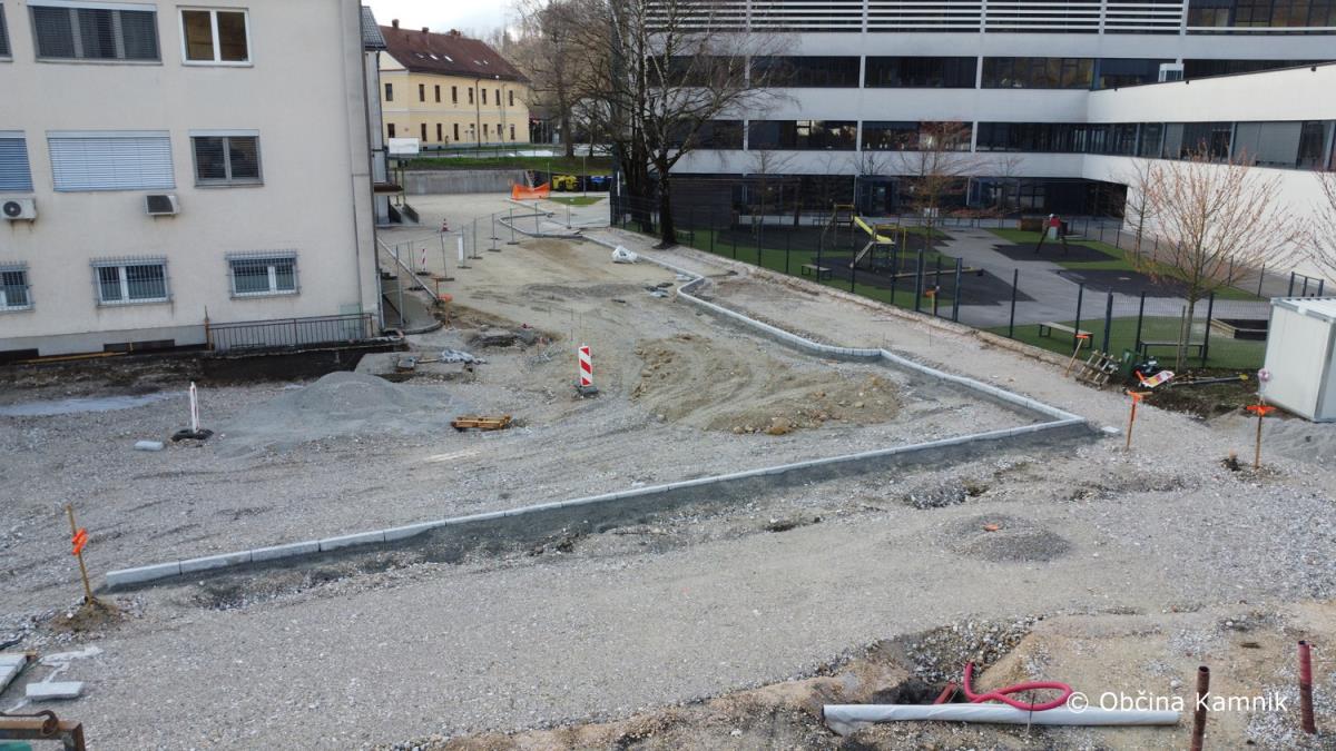 V preteklem tednu je izvajalec del družba GP Resnik, d. o. o. nadaljeval z deli izgradnje zunanje ureditve na območju rekonstrukcije Kajuhove poti na vzhodni strani objekta Glasbene šole, ter na delu izgradnje zunanjih športnih in parkovnih površin med obema šolama v UN K9 Šole.