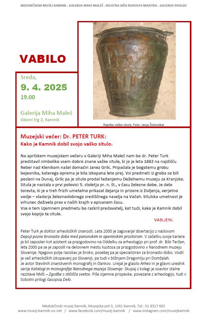 Muzejski večer: Dr. Peter Turk: Kako je Kmanik dobil svojo vaško situlo