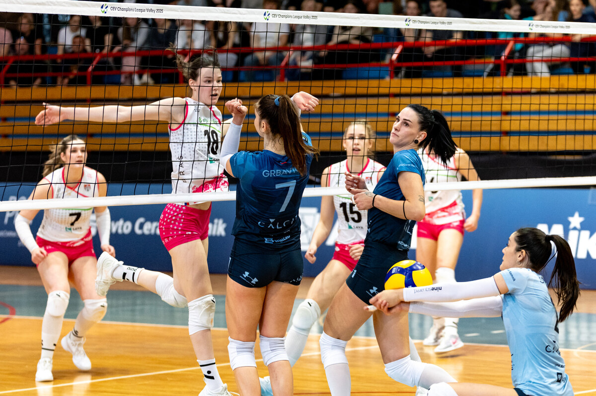 Tudi drugi niz so bolje začele gostje, ki so z napadom Šenove povedle s 5:1, po točki Grbavice pa s 7:2. Po bloku Hutinskijeve in vodstvu Calcit Volleyja z 12:6, je Kos vzel še drugi polminutni odmor v drugem nizu, vendar so Kamničanke po njem dosegle še tri točke, zadnjo Maša Pucelj. Visoke prednosti calcitovke niso zapravile, še več, z blokom Hutinskijeve so vodile že z 19:7. Drugi niz, v katerem so bile Kamničane veliko učinkovitejše v napadu, kot v prvem nizu, ko so bile le 21-odstotne, je z blokom končala Grbavica.