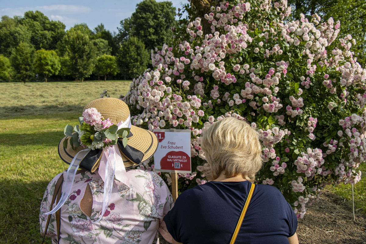 Obiskovalci so lahko glasovali za najlepšo vrtnico, da je bilo glasovanje lažje pa je bil prej narejen izbor 20 najlepših. Vrtnice so bile razporejene tako, da so vas vodile skozi vsa prizorišča spodnjega rozarija. Letošnja zmagovalka je 'Frau Eva Schubert', drugo mesto je osvojila 'Geschwinds Schönste' ter tretje 'Roter Korsar'.