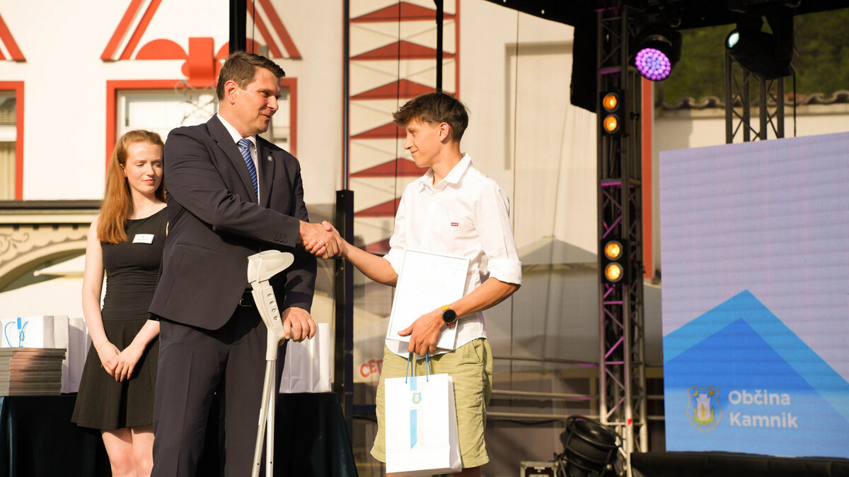 V ponedeljek, 23. junija 2025, je na Glavnem trgu v Kamniku župan Matej Slapar podelil priznanja 34 najboljšim učenkam, učencem kamniških osnovnih in srednjih šol ter Glasbene šole Kamnik v šolskem letu 2024/2025, obenem pa se je zahvalil tudi ravnateljem kamniških šol. Dogodku so prisostvovali ravnatelji in mentorji nagrajenih učencev in dijakov ter seveda ponosni starši, stari starši in prijatelji.