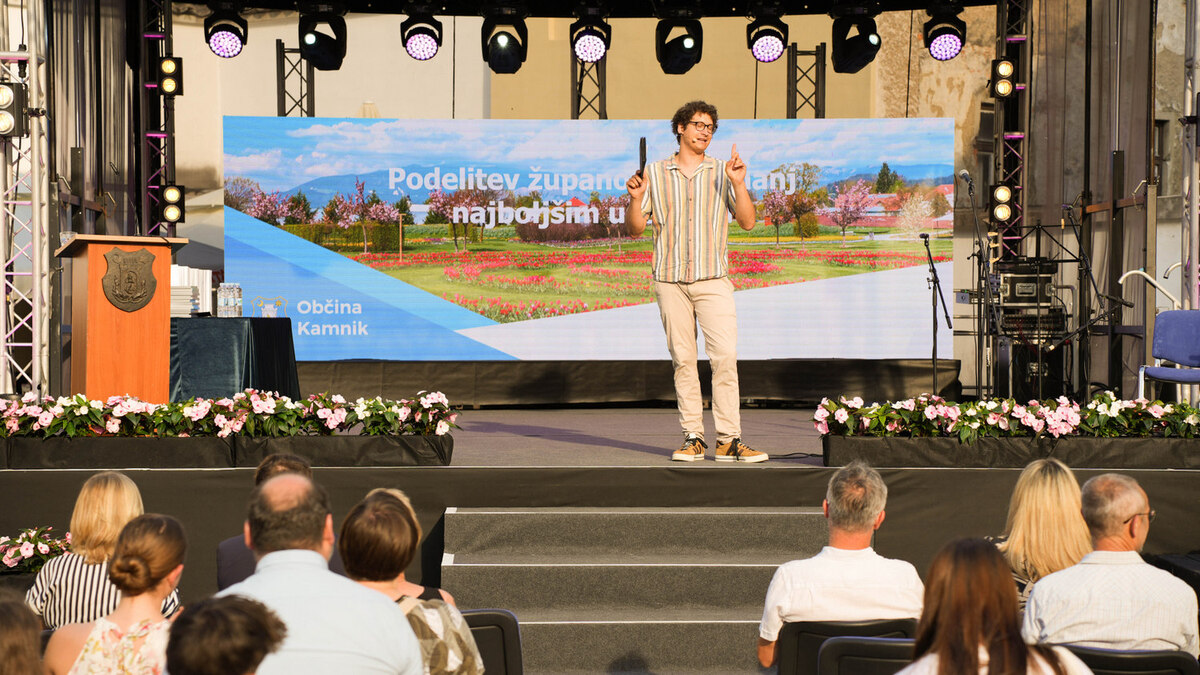 Najboljšim učenkam in učencem, dijakinjam in dijakom je župan Matej Slapar iskreno čestital za njihov uspeh ter dejal, da priznanja niso le nagrada, temveč tudi spodbuda za prihodnost. V govoru je poudaril vrednote radovednosti, poguma, sodelovanja in spoštovanja, ki mladim pomagajo razumeti in spreminjati svet. Ob tem je izpostavil pomembnost korenin – domačega kraja Kamnika, kjer so nagrajenke in nagrajenci prejeli prvo podporo. Ob koncu nagovora se je zahvalil učiteljem, ravnateljem in staršem za njihovo vztrajnost, potrpežljivost in predanost ter zaključil z mislijo: »Kamnik je ponosen na svoje mlade.«