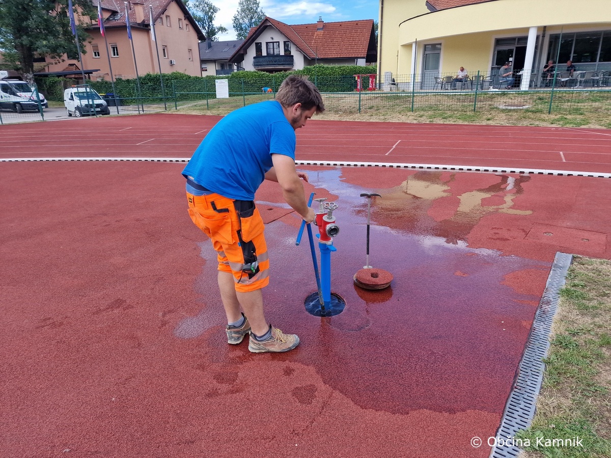 Izbran izvajalec del Komunalno podjetje Kamnik, d. o. o. je na podlagi izvedenega javnega naročila izvedel povezavo obstoječe vrtine VSK-1 na vodovodno omrežje stadiona.