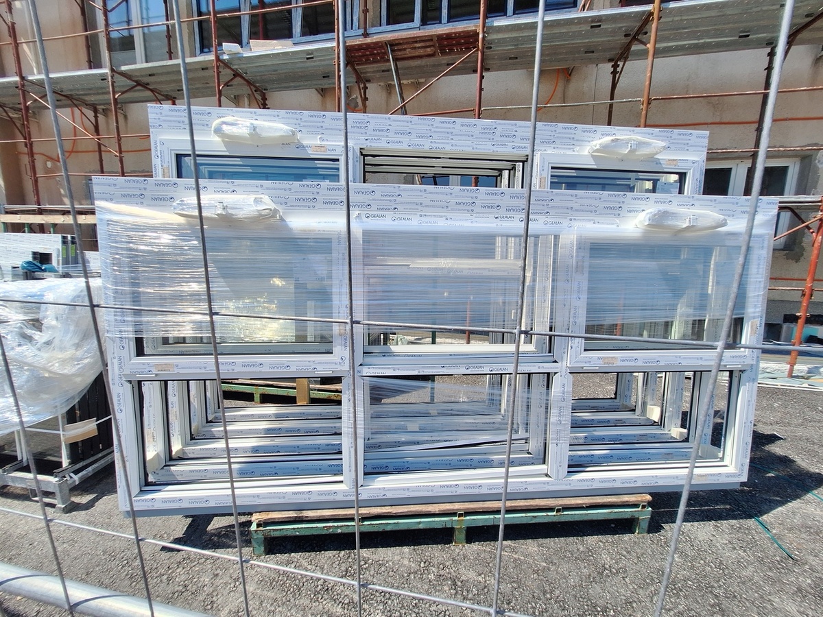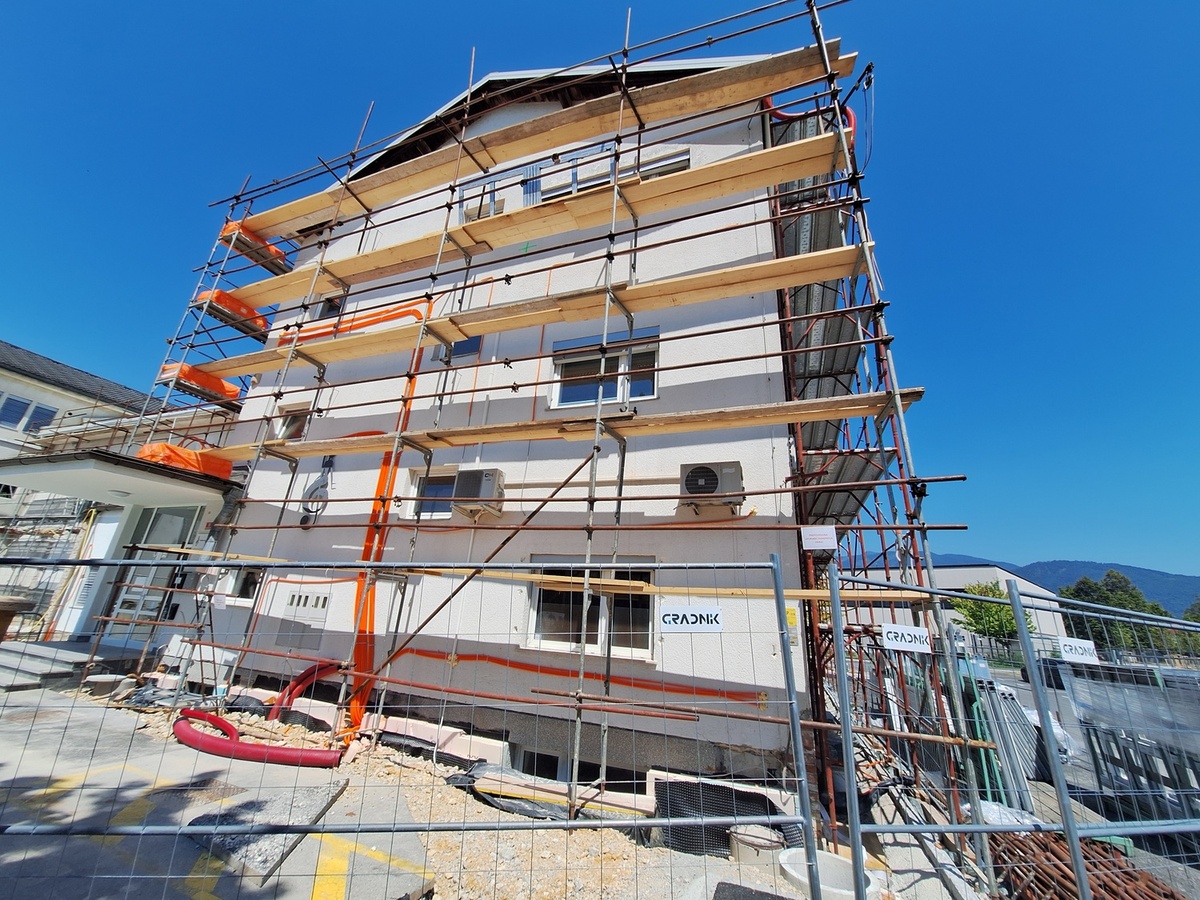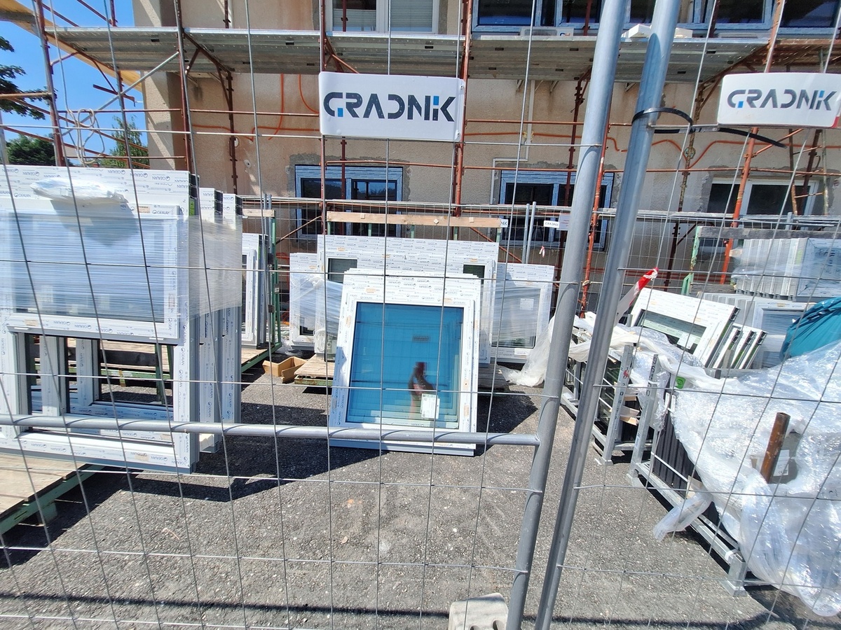 Izvajalec je na objektu Glasbene šole in Urada za delo izvedel postavitev gradbenega odra, delno demontažo klimatskih naprav ter začel z menjavo stavbnega pohištva (okna).