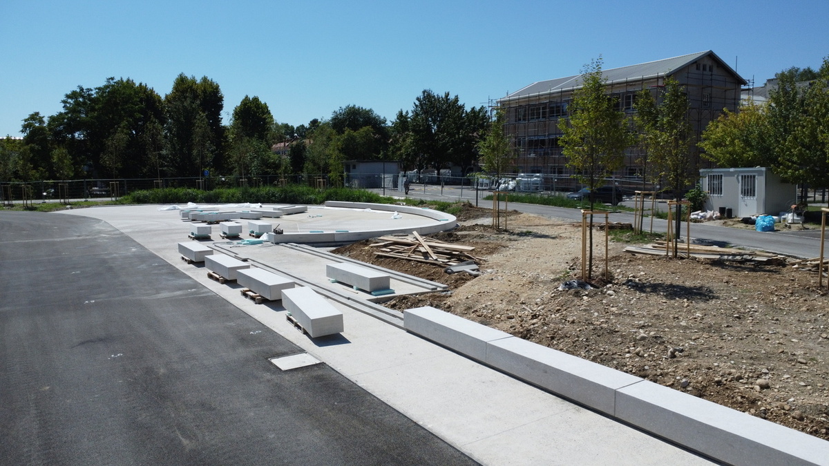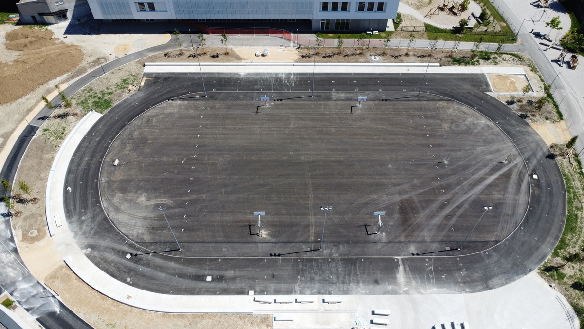 Izvajalec del družba GP Resnik, d. o. o. je v preteklem tednu nadaljeval z gradbenimi deli pri izgradnji zunanjih športnih površin na območju UN K9 šole. Dela so potekala na območju športnega igrišča ter ob dostopnih poteh med podhodom pod Šolsko ulico in športnimi površinami.
