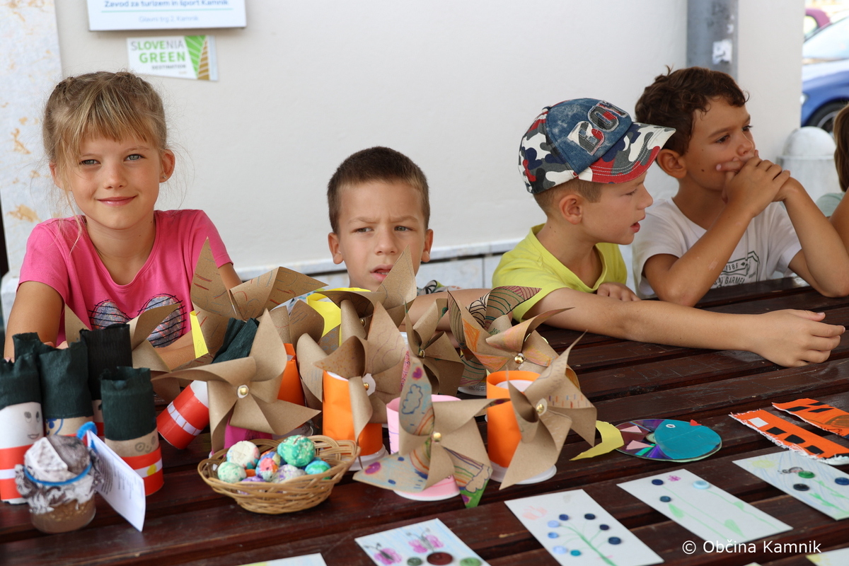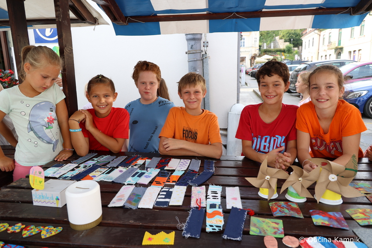 Ustanovitelj in gonilna sila društva Boštjan Košir je pojasnil: »Letos smo si za osrednjo temo izbrali države Evrope. Vsak teden smo spoznali eno – ko je bila na vrsti Italija, smo naredili in sami pekli pice ter pripravili modno revijo, ob Grčiji in Franciji smo ustvarjali na njihove motive, zdaj pa raziskujemo Dansko. Vsak dan gremo tudi na bazen ali v Keršmančev park, obiskujemo galerijo Prečna, kamniške obrtnike, TIC Kamnik in se odpravljamo na pohode. Izdelki, ki jih vidite na tržnici, so rezultat vseh terminov – prispevali so jih prav vsi otroci. Donacije, zbrane s tržnico, pa bomo namenili mladim kamniškim družinam v stiski.«