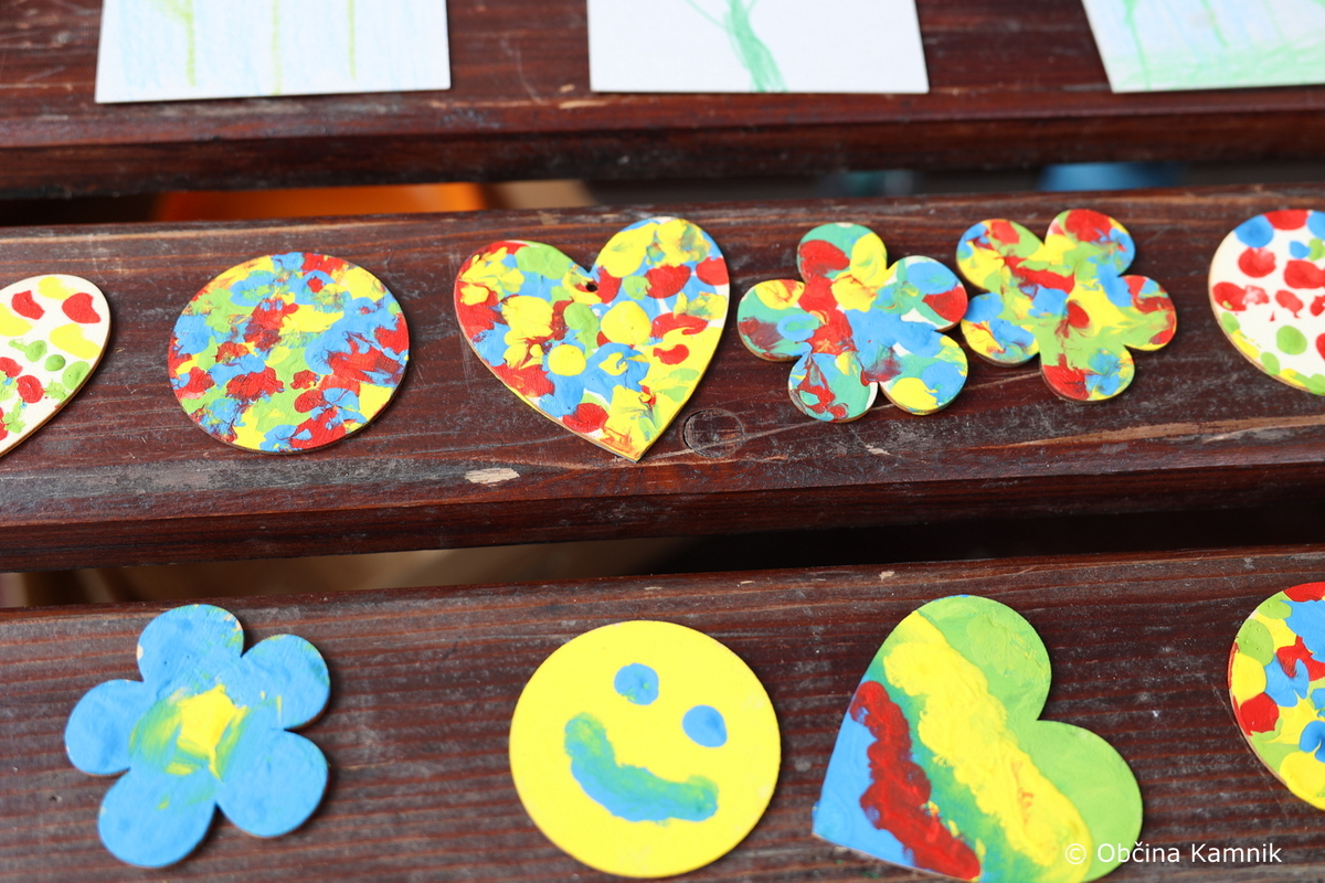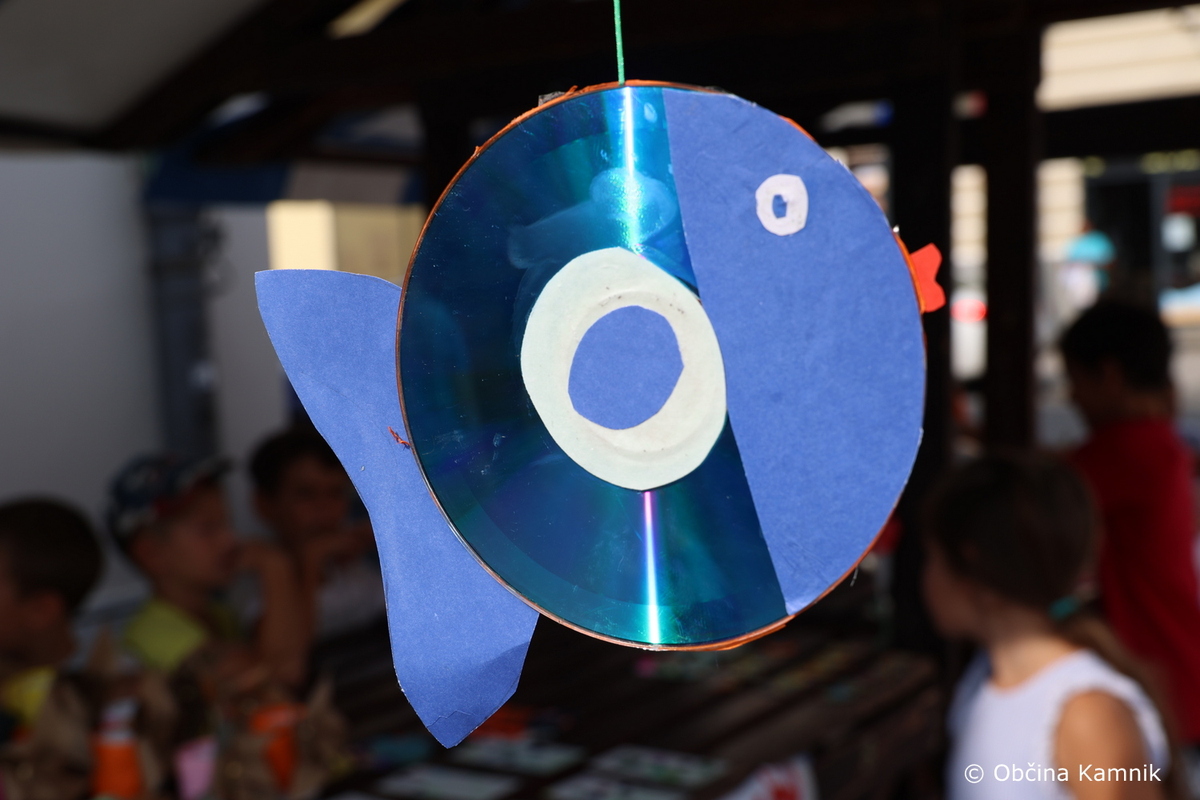 Lana je ponosno razkazala izdelke: sladoledne palčke iz kolažnega papirja, srčke iz hama perlic, knjižne kazalke, hranilnike, rožice na ščipalkah, zapestnice iz elastik, vetrnice … in povedala, da jih posebej navdušuje ustvarjanje na temo različnih držav. Včeraj so, denimo, izdelovali ribe iz starih CD-jev. Pohvalila je tudi svoje mentorice.