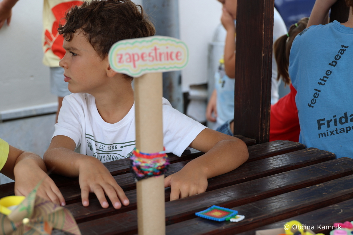 Na stojnicah so otroci, pod vodstvom mentorjev, predstavili pestro izbiro izdelkov, ki so jih ustvarjali skozi poletje. Obenem so obiskovalcem zaupali vtise o preživetih dneh, zapeli himno počitniškega varstva in še nekaj drugih pesmic.