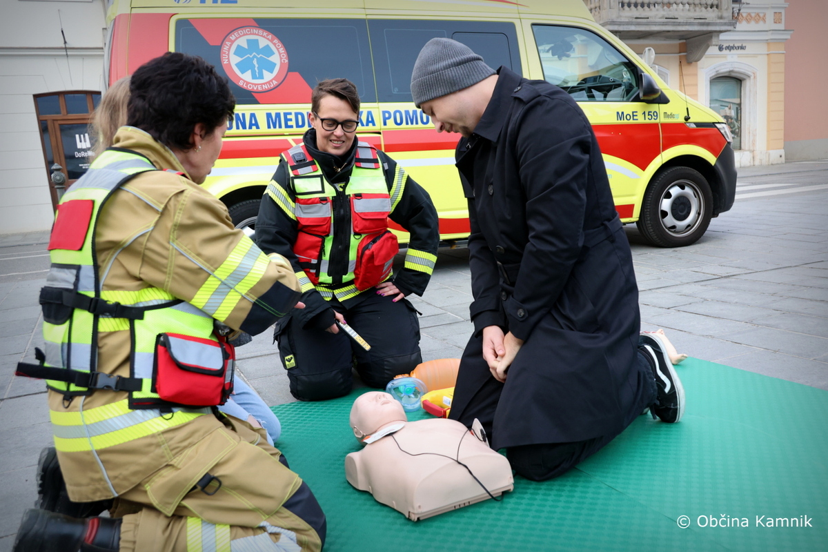 Kamnik, 18. oktober 2025 – Ob letošnjem Svetovnem dnevu oživljanja (16. oktober) sta Reševalna postaja Kamnik in Občina Kamnik v sodelovanju z Zdravstvenim domom dr. Julija Polca Kamnik, patronažno službo in prvimi posredovalci pripravili dva ozaveščevalna dogodka, ki sta obiskovalcem ponudila dragocene informacije, praktična znanja in zavedanje, da lahko vsakdo reši življenje.