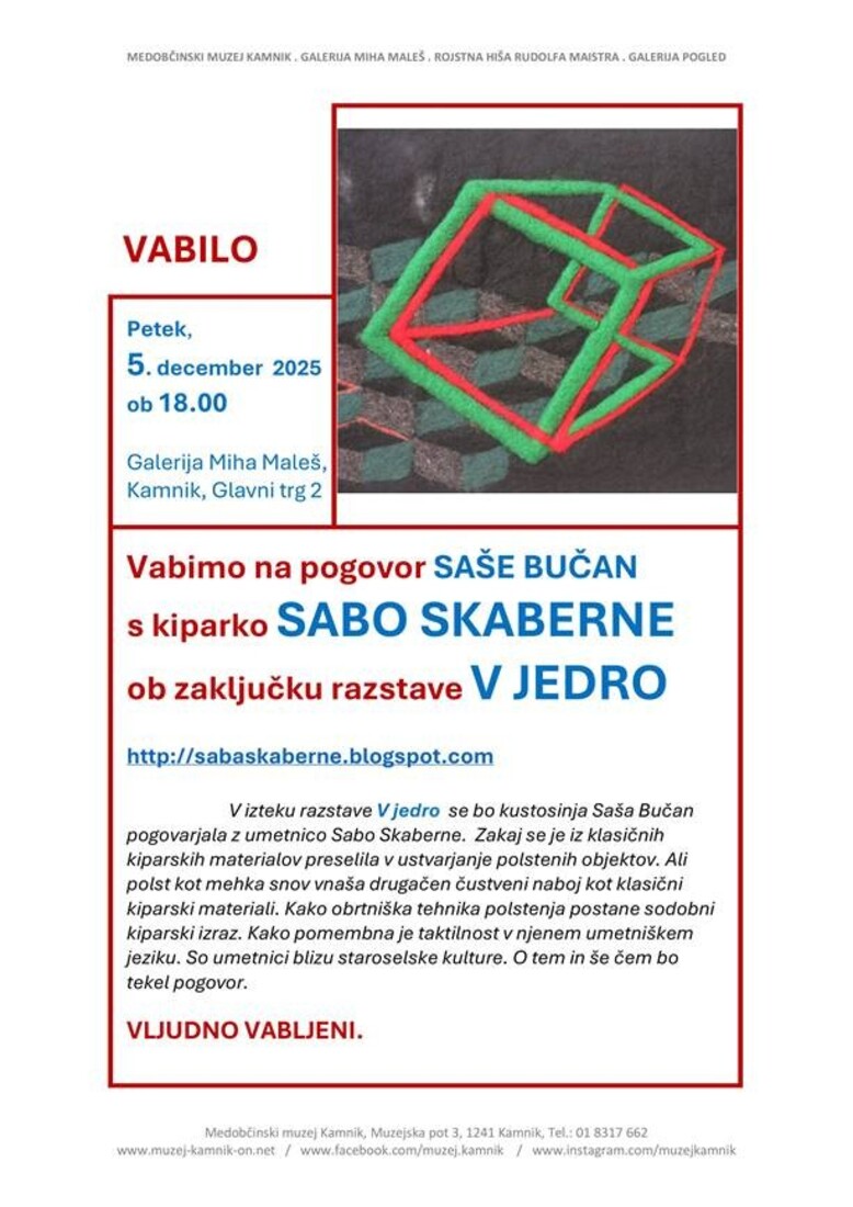 Pogovor Saše Bučan s kiparko Sabo Skaberne ob zaključku razstave V jedro