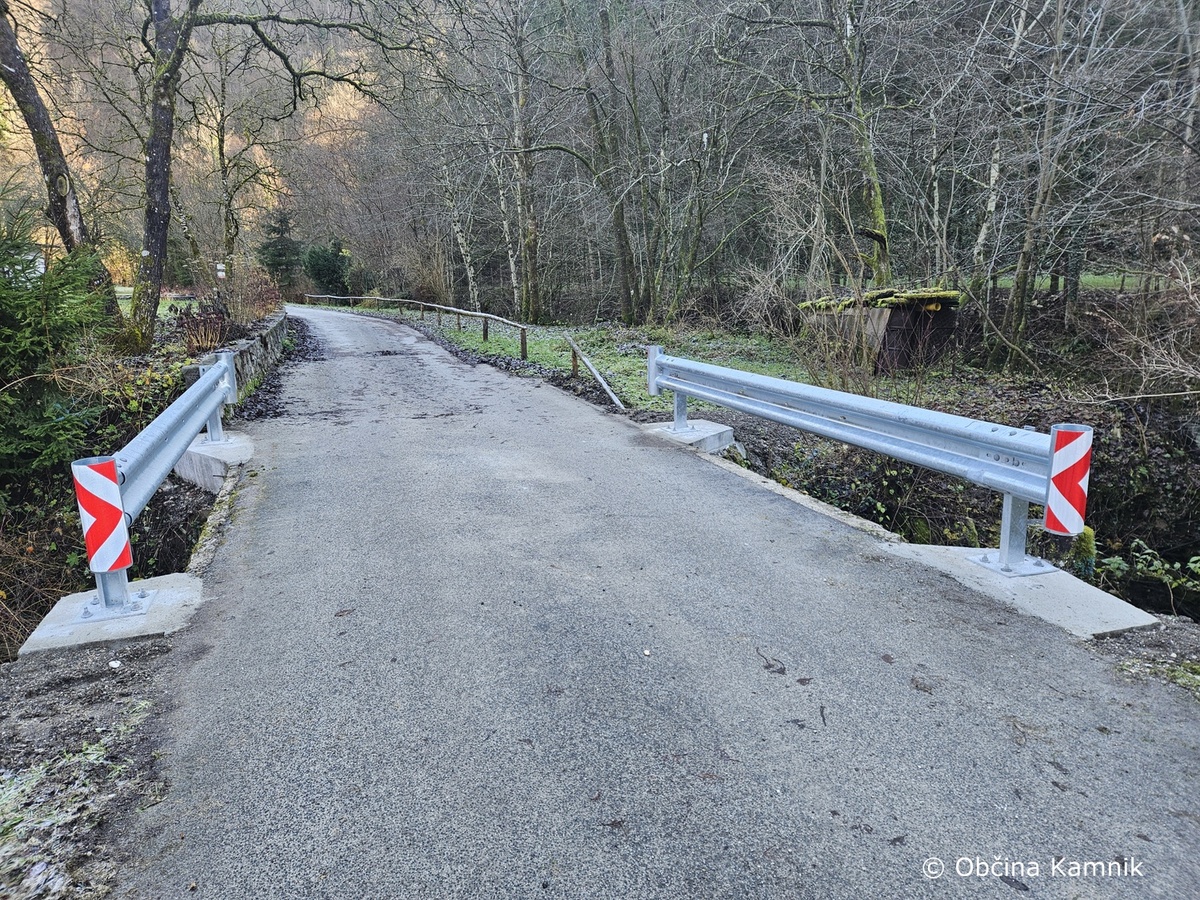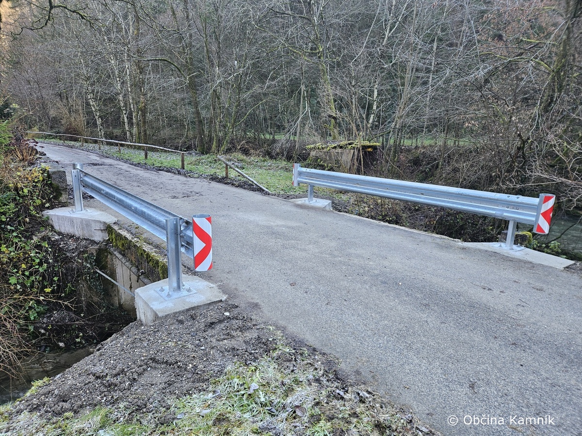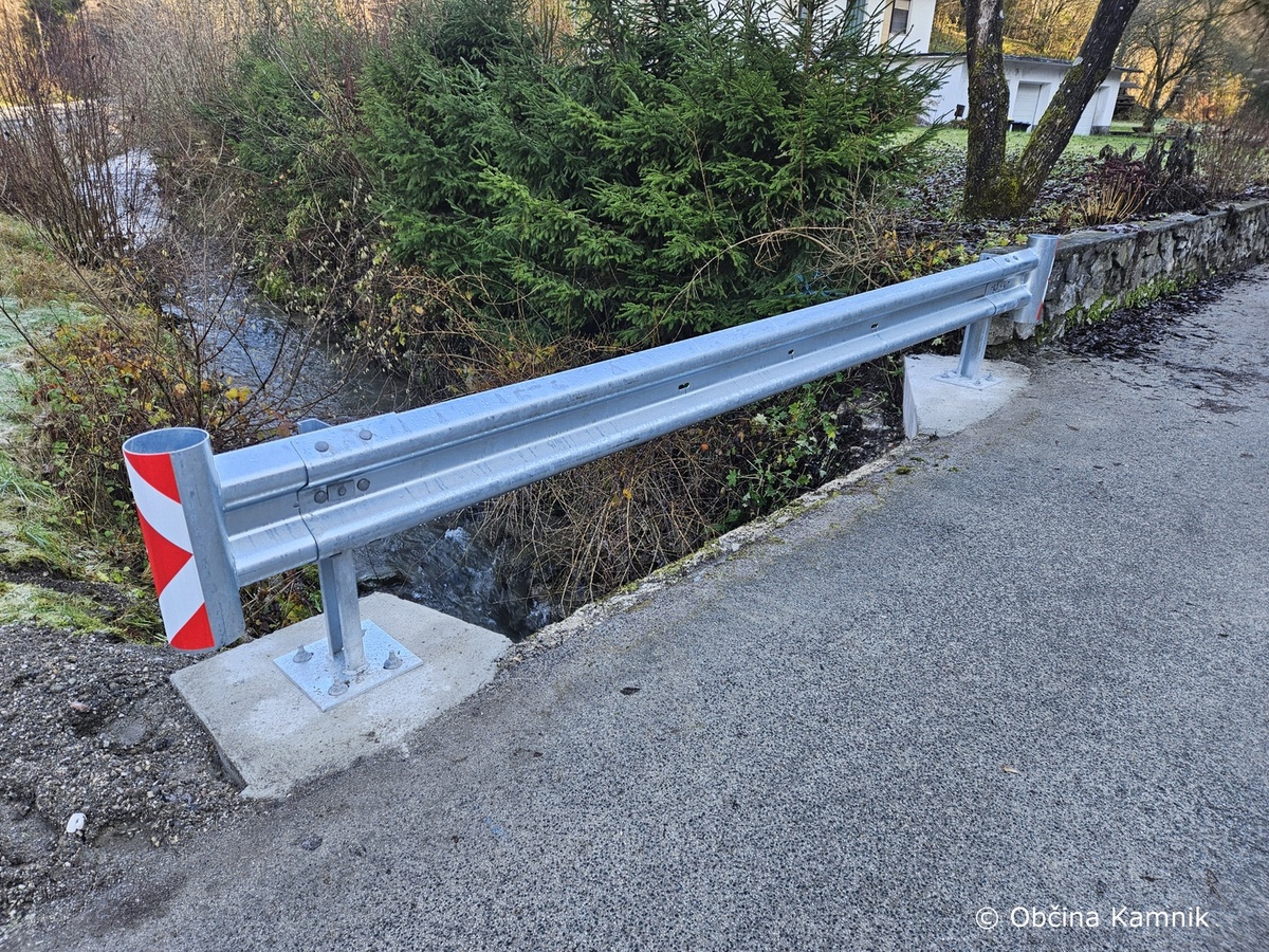 Občina Kamnik je v Vrhpolju na mostičku zamenjala dotrajano JVO ograjo. Temelje je zalilo podjetje KPK, d. o. o., montažo ograje pa je izvedlo podjetje Kveder, d. o. o.