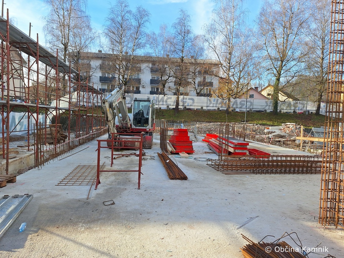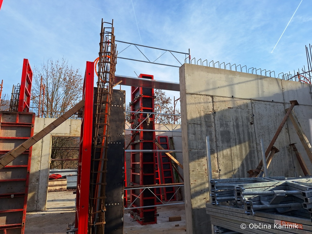 Prav tako se nadaljujejo dela na objektu knjižnice. Izvajalec je nadaljeval z montažo opažnega sistema za namen betoniranja sten pritličja.