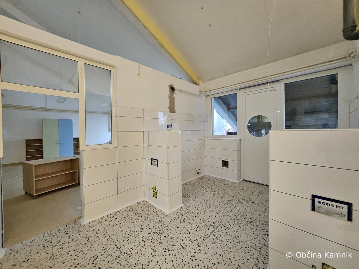 V sklopu prenove je bila obstoječa jedilnica povečana na račun sosednje pisarne, pri čemer je bila odstranjena predelna stena. Nivo tlaka v nekdanji pisarni je prilagojen nivoju jedilnice, kjer so keramične ploščice, sam tlak pa je zamenjan s parketom. Stene so slikopleskarsko obdelane, kar prostoru daje topel in vabljiv občutek.