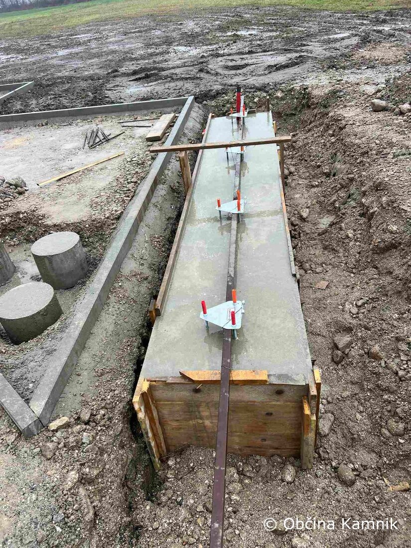 V zadnji fazi so bili izvedeni izkopi in priprave gradbenih jam, postavitev opažev, armature in sider ter opravljeno betoniranje točkovnih in pasovnih temeljev.