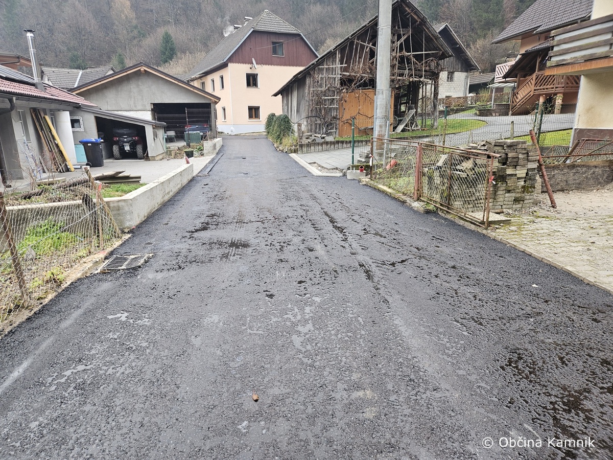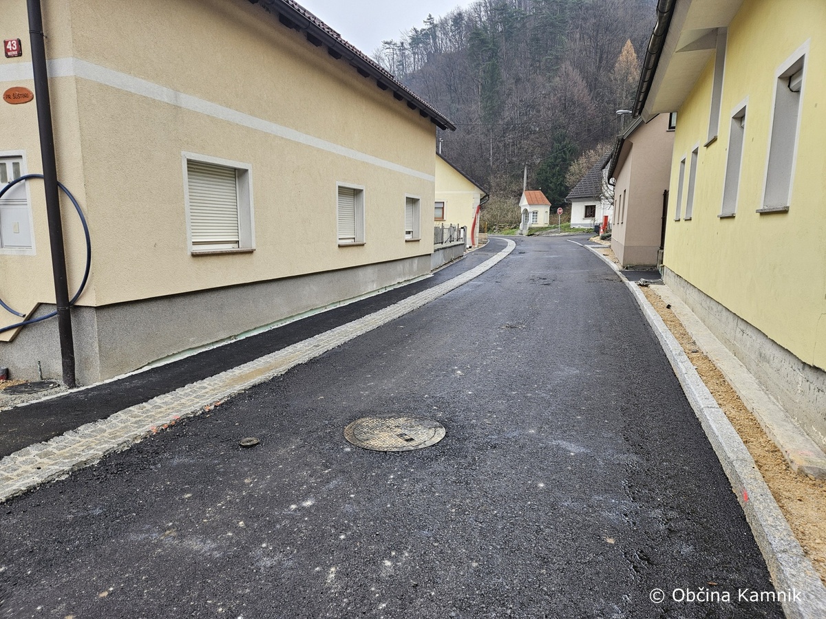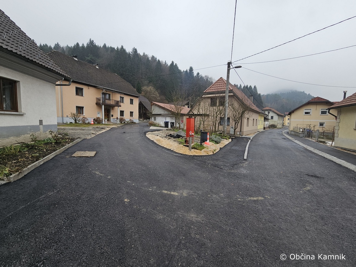 Na zahodnem robu obstoječega naselja je pas nepozidanih stavbnih zemljišč, za katera so izdelani pogoji za graditev objektov, h katerim spada zgoraj omenjena infrastruktura. V preteklem tednu je bila izvedena priprava gradbišča, zakoličba trase ceste, izvajalec Komunalno podjetje Kamnik, d. o. o. pa je začel z deli.
