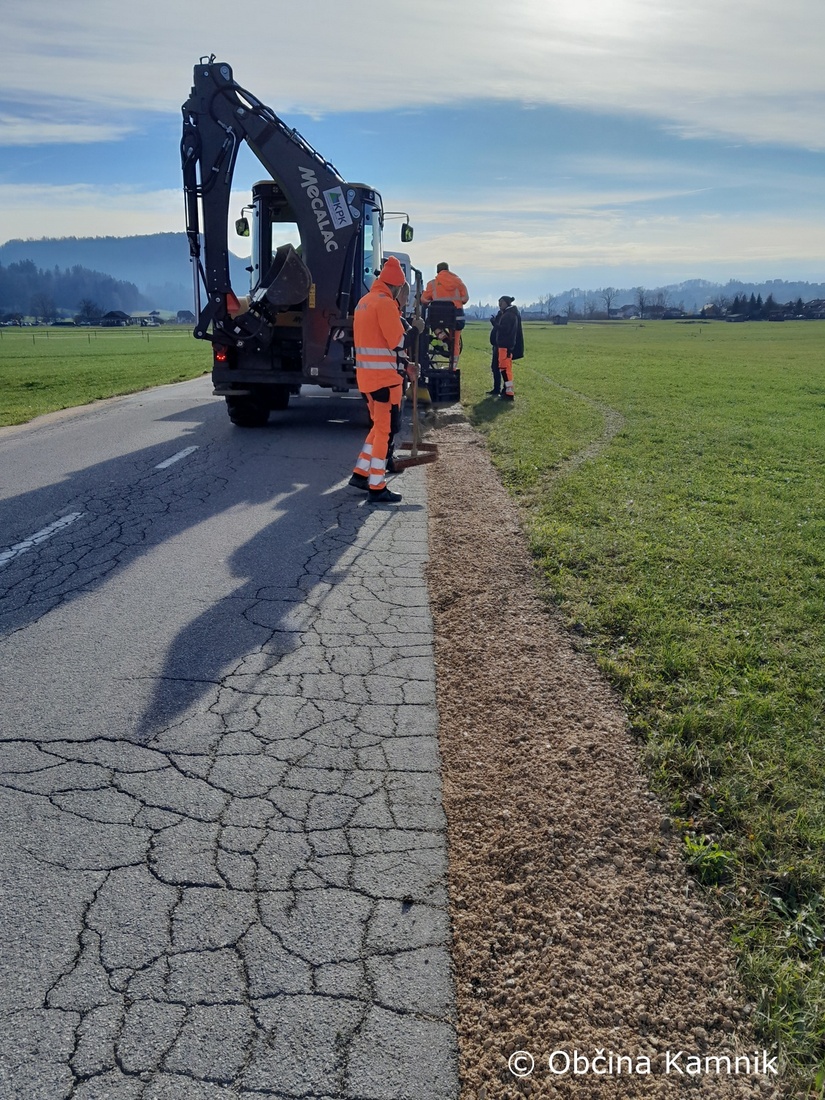 Podjetje KPK, d. o .o . je z novim strojem za nasipanje bankin saniralo bankine na poškodovanih odsekih.