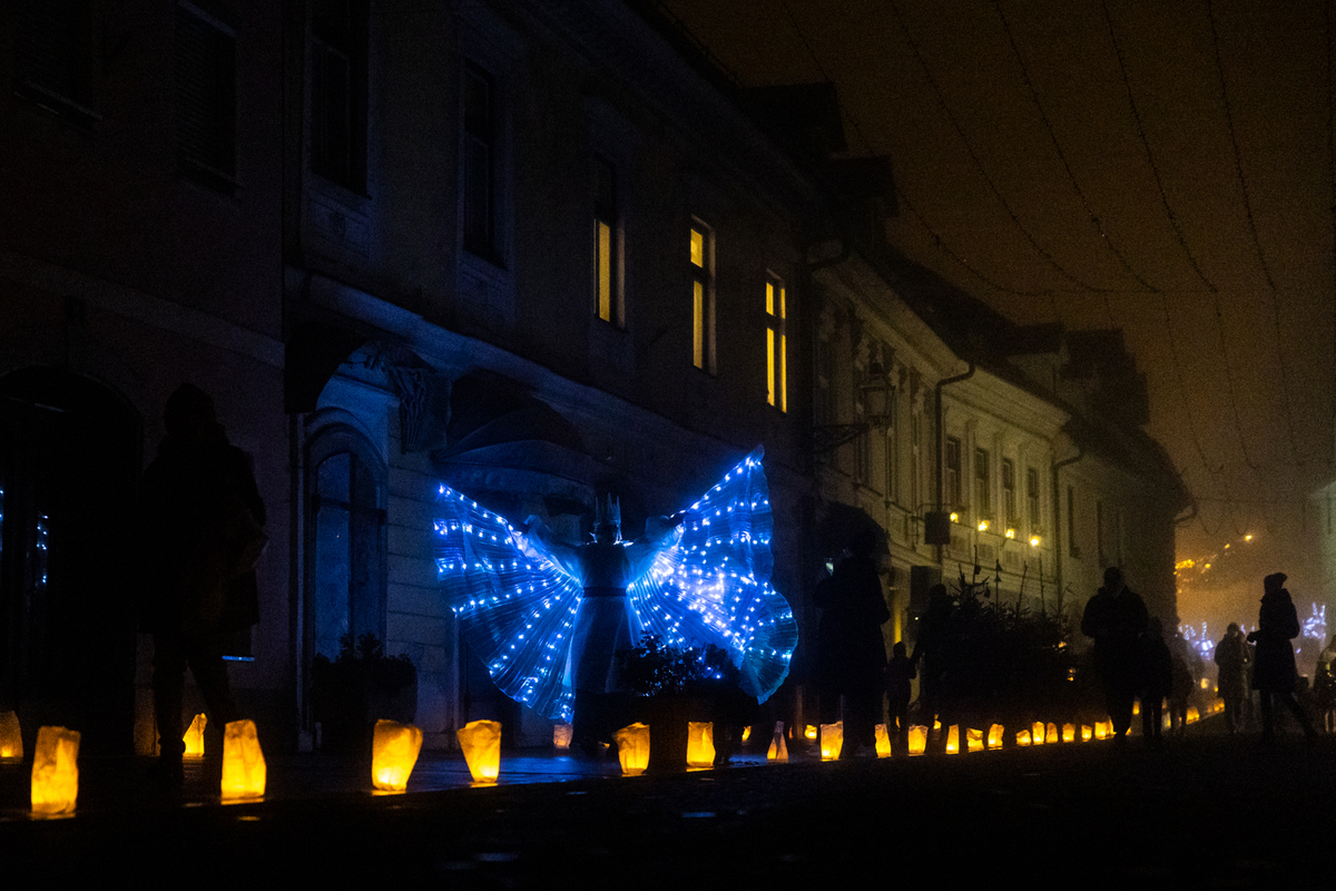 Nocoj je prireditev Luči pravljične Šutne spet ovila najlepšo ulico v mestu v čarobnost svetlobnih plamenov. Na Šutni so najprej ugasnile vse luči – ulica je potonila v popolno temo, tiho in skrivnostno, kot bi za trenutek zadržala dih. Le stoteri plamenčki svečk v lampijonih, ki so mehko osvetljevali pot skozi Šutno, so dajali občutek miru in nežnega zaupanja, da se prava svetloba nikoli povsem ne umakne.