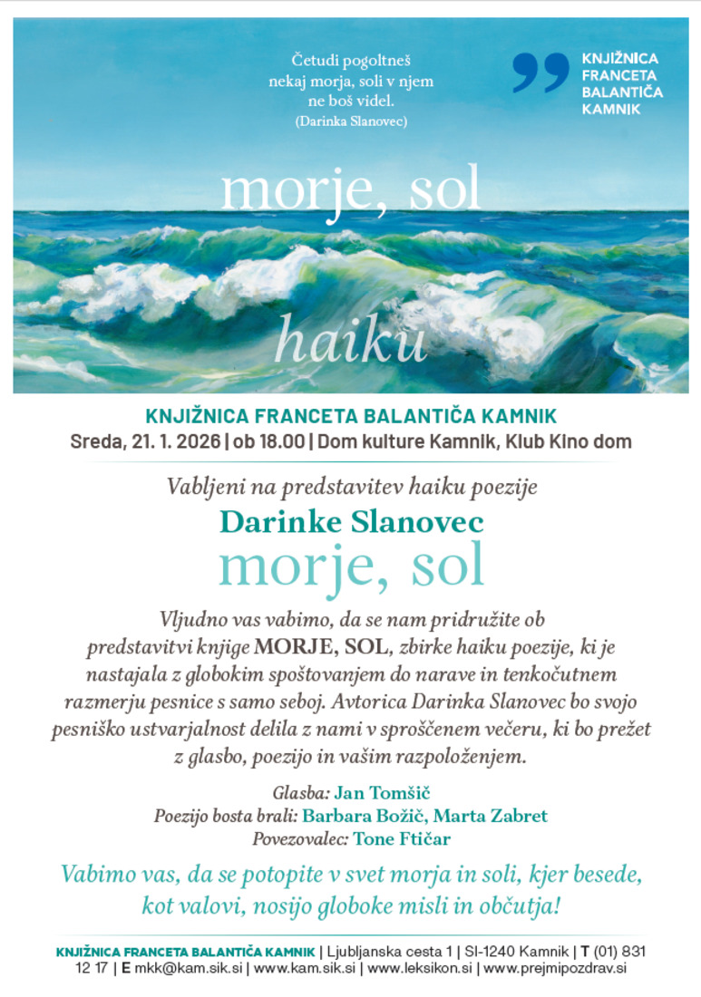 Knjižnica Franceta Balantiča Kamnik: Darinka Slanovec: MORJE, SOL