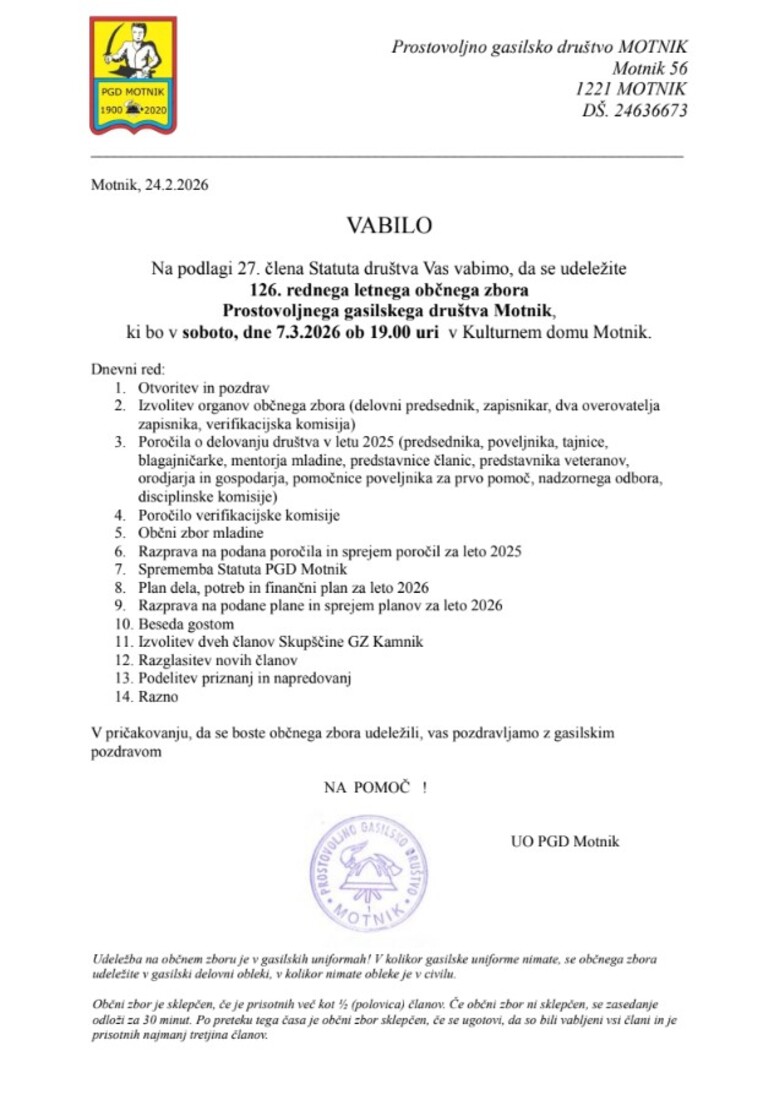 Občni zbor PGD Motnik
