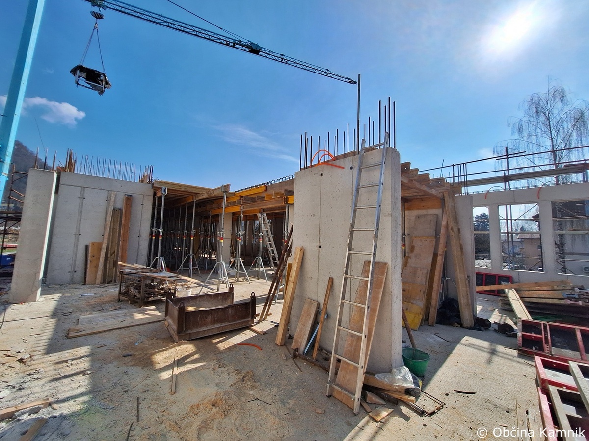 Na objektu osrednje kamniške knjižnice se je nadaljevalo izvajanje gradbenih del, in sicer opaženje podpornega stebra, vgrajevanje armature in betona v vzhodni del armirano betonske plošče nad prvim nadstropjem. Na zahodni strani južnega trakta se je izvajalo vezanje in vgrajevanje armature nosilnih sten prvega nadstropja, vgrajevanje zaščitnih cevi za namen elektro instalacij ter montaža opaža notranjega dela sten.