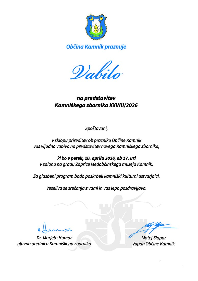 PREDSTAVITEV KAMNIŠKEGA ZBORNIKA ŠT. XXVIII/2026